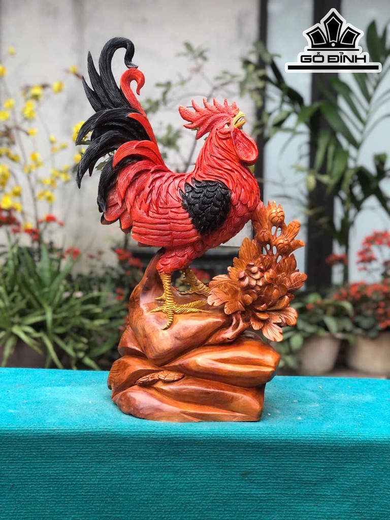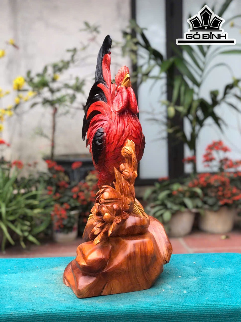 Tượng Gà Trống Gỗ Hương Cao 63 Ngang 40 Sâu 25 (cm)