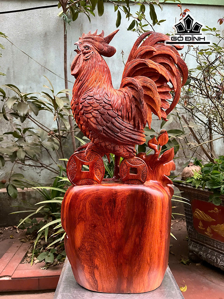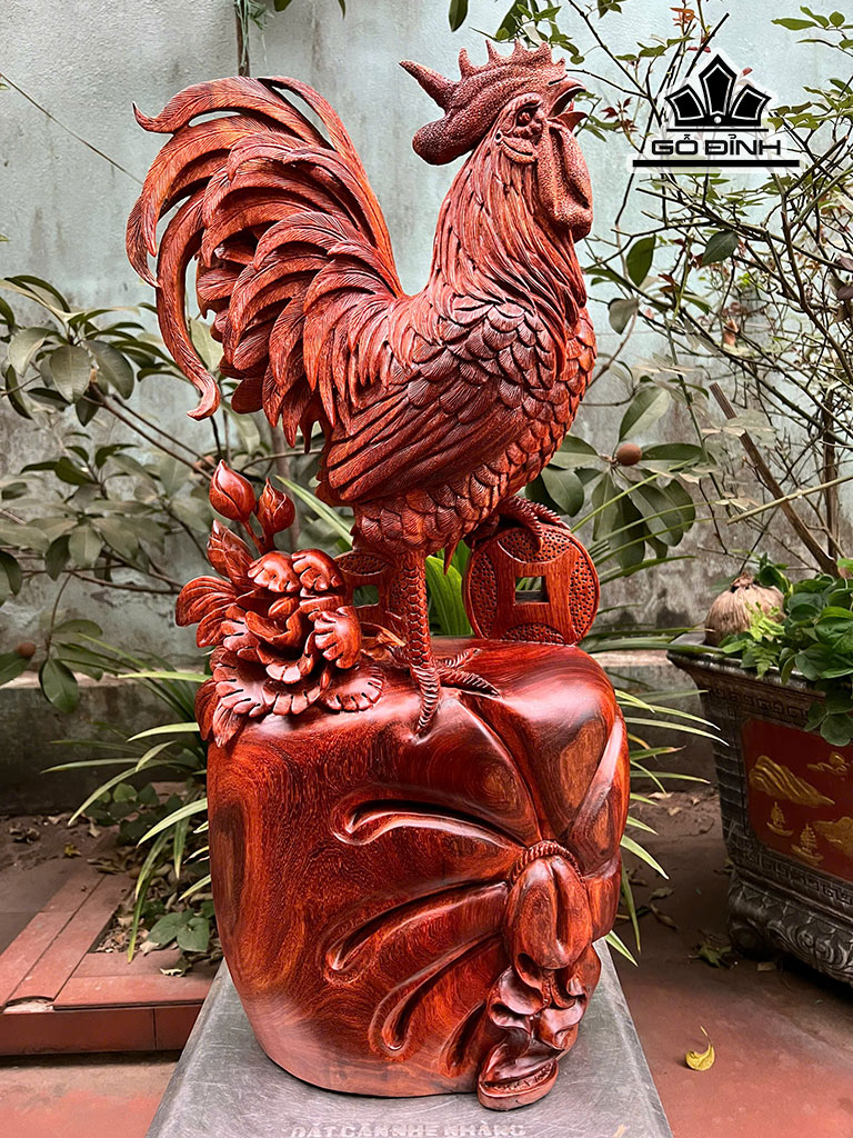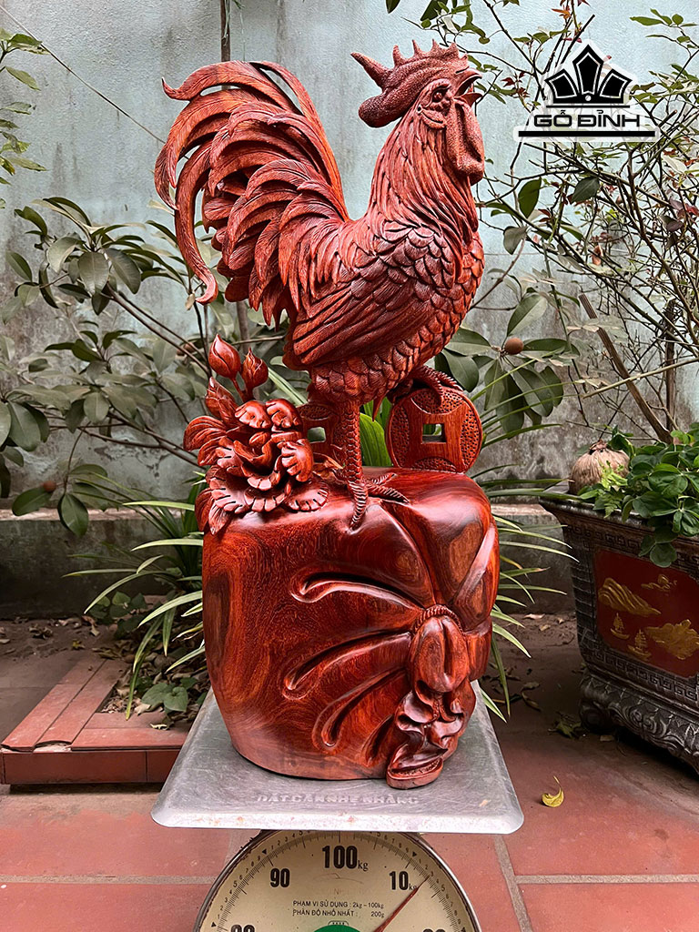 Tượng Gà Trống Gỗ Hương Cao 66 Ngang 32 Sâu 14 (cm)