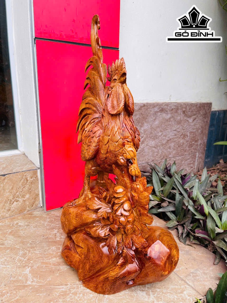 Tượng Gà Trống Gỗ Hương Cao 66 Ngang 36 Sâu 22 (cm) - 11kg