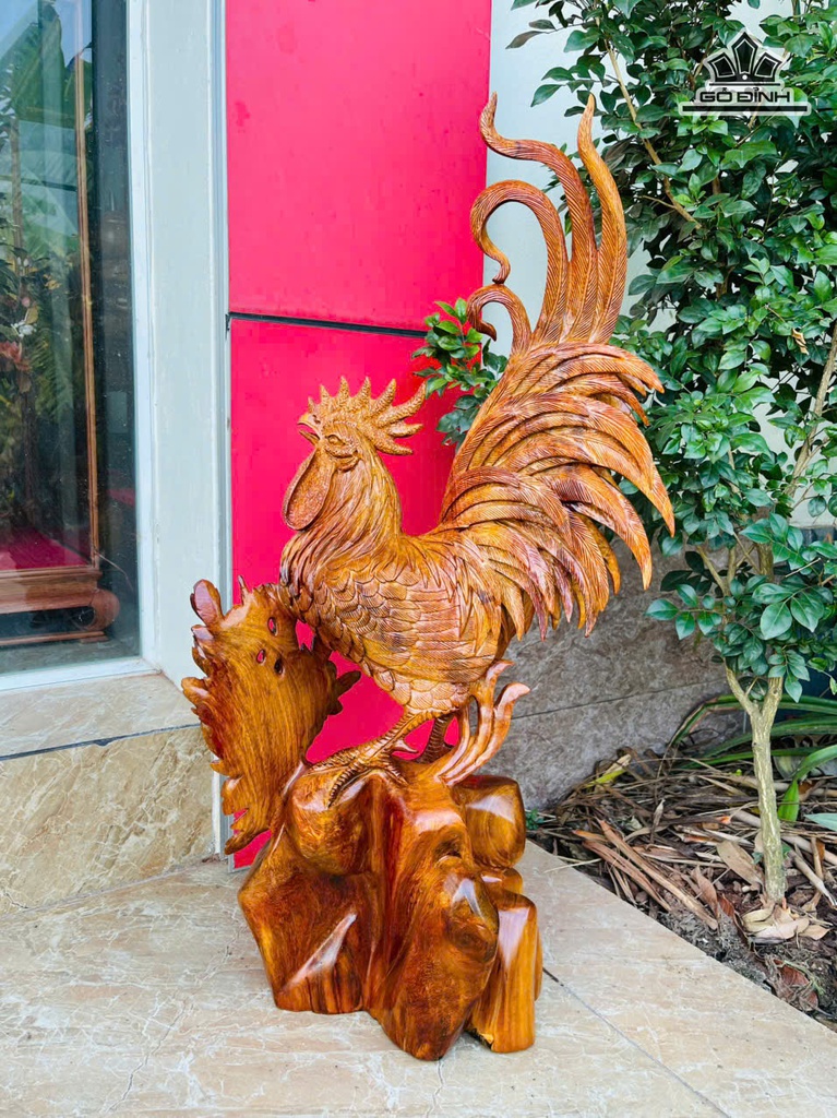 Tượng Gà Trống Gỗ Hương Cao 75 Ngang 35 Sâu 22 (cm) - 10kg