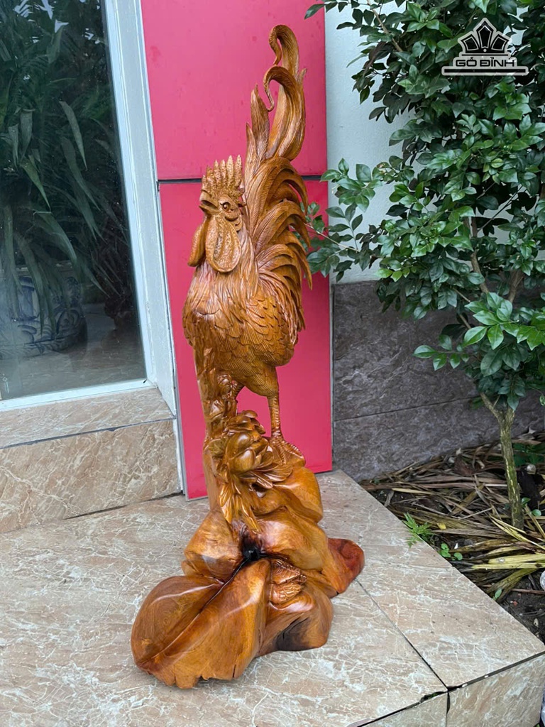 Tượng Gà Trống Gỗ Hương Cao 80 Ngang 36 Sâu 22 (cm) - 11kg