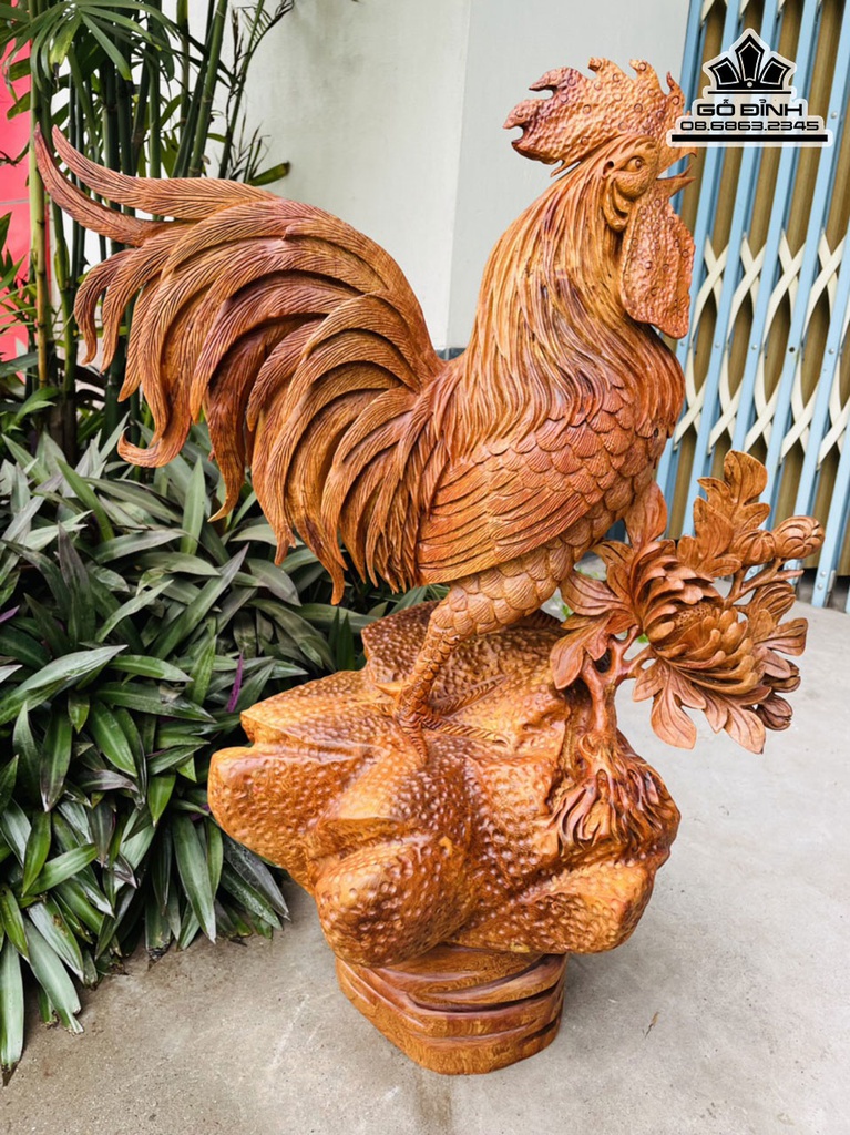 Tượng Gà Trống Gỗ Hương Việt Cao 68 Ngang 39 Sâu 28 (cm)