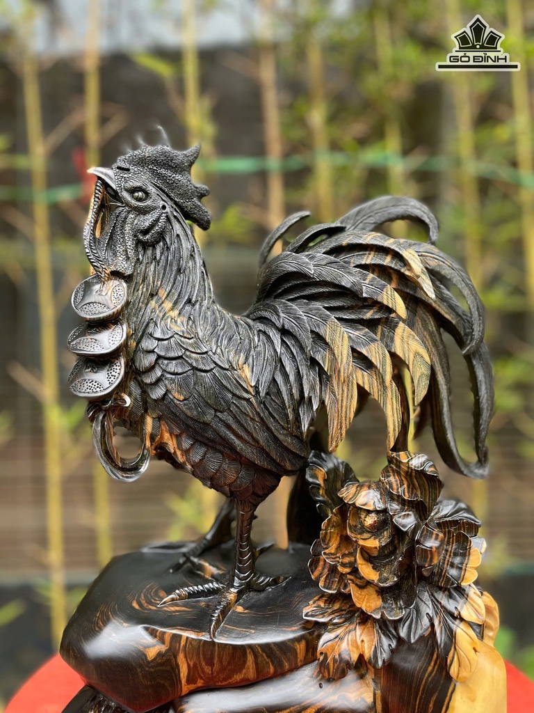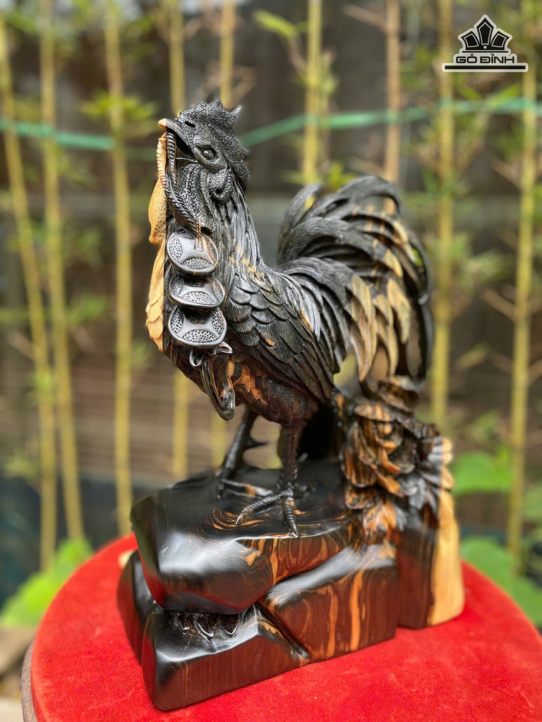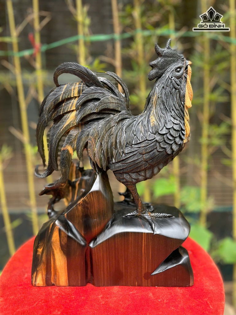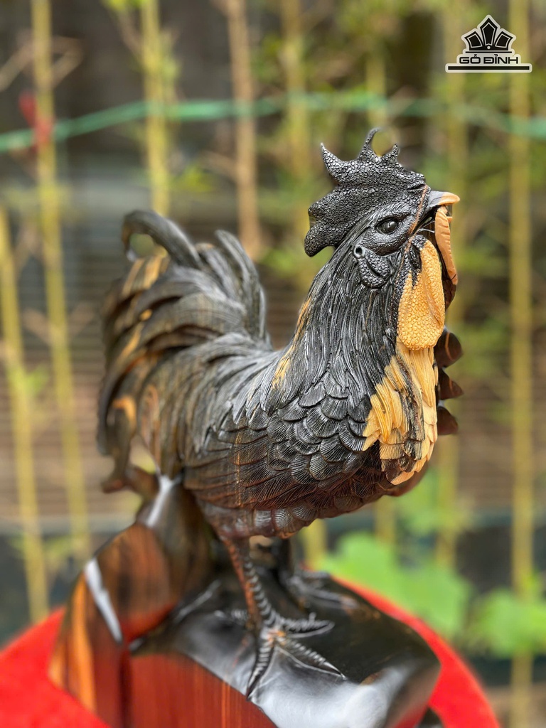 Tượng Gà Trống Gỗ Mun Hoa Cao 39 Ngang 26 Sâu 13 (cm)