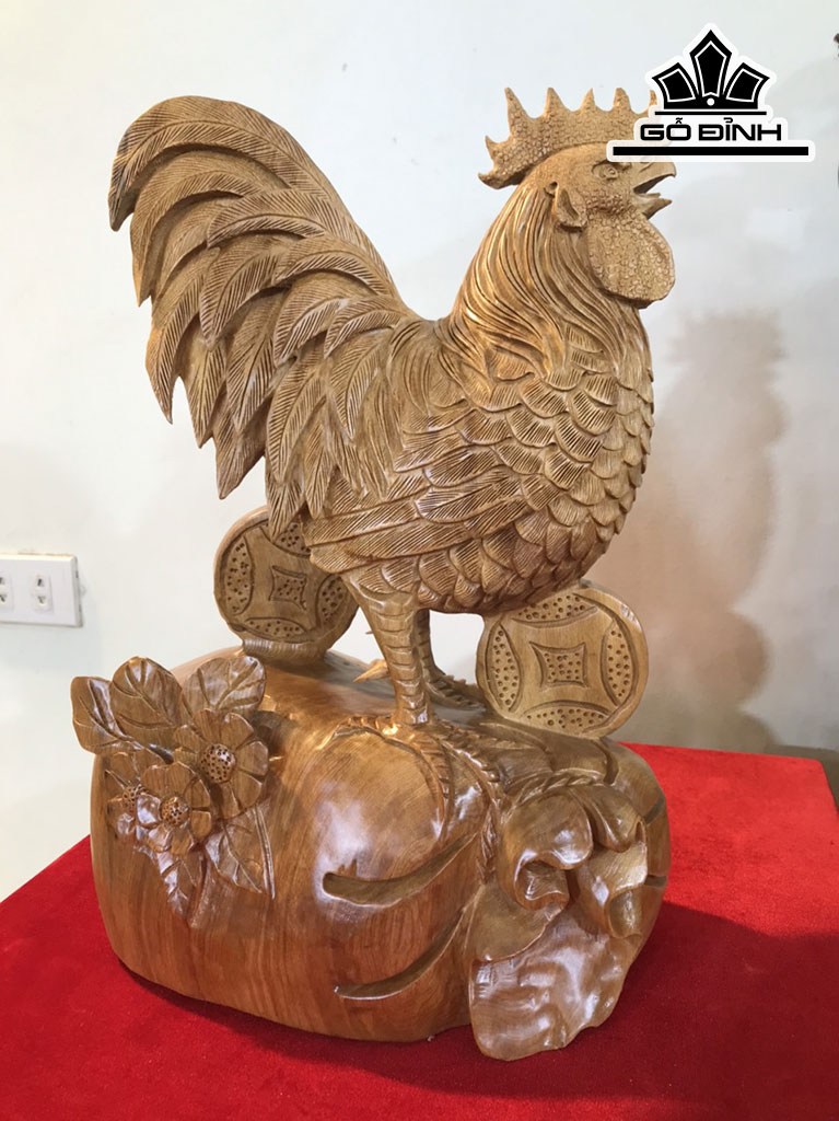 Tượng Gà Trống Gỗ Ngọc Am Cao 40 Ngang 27 Sâu 15 (cm)