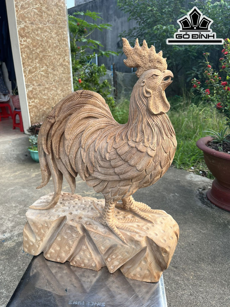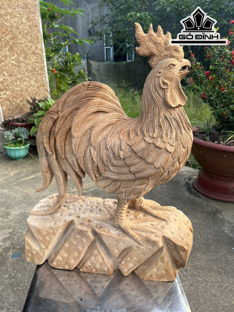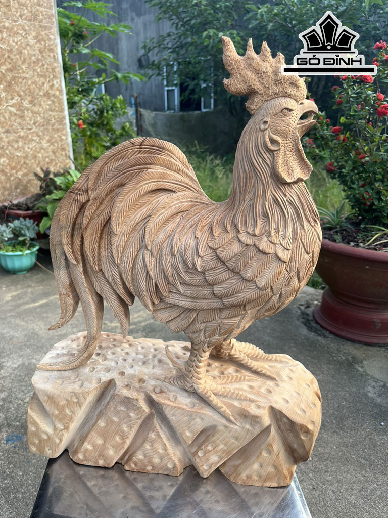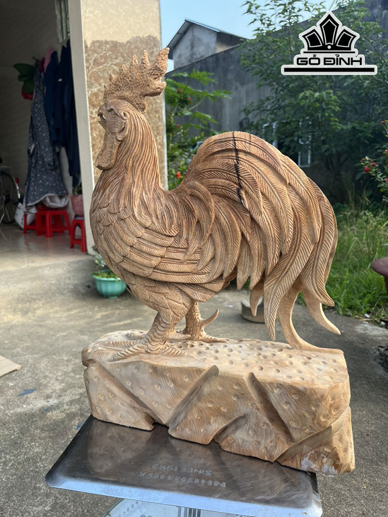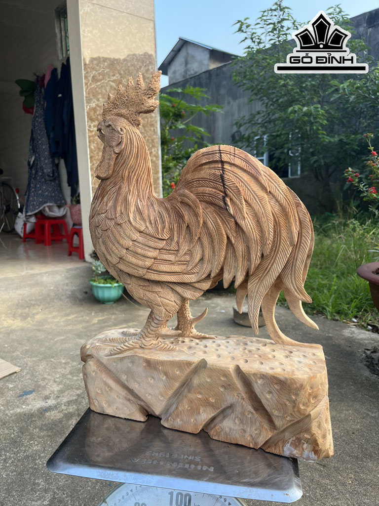 Tượng Gà Trống Gỗ Ngọc Am Cao 51 Ngang 38 Sâu 14 (cm)