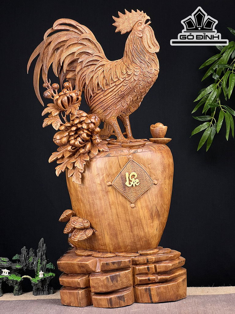 Tượng Gà Trống Gỗ Ngọc Am Cao 85 Ngang 44 Sâu 23 (cm)