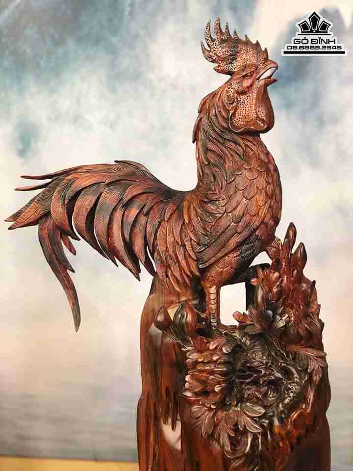 Tượng Gà Trống Gỗ Trắc Cao 96 Rộng 55 Dày 22 (cm)