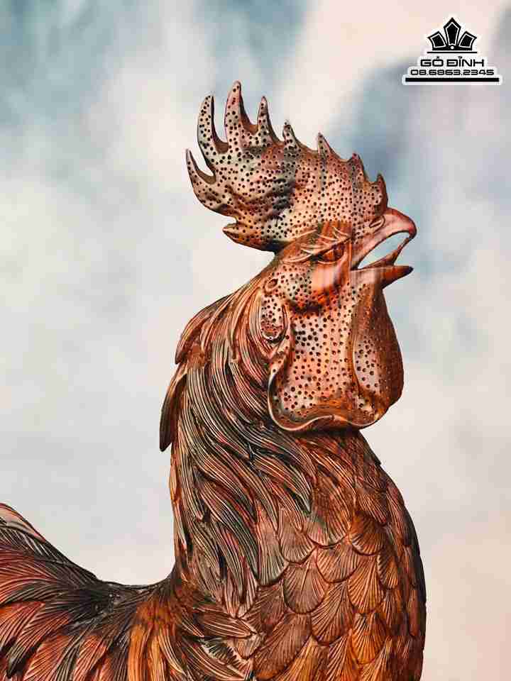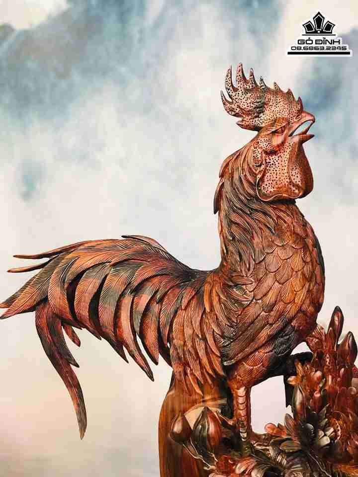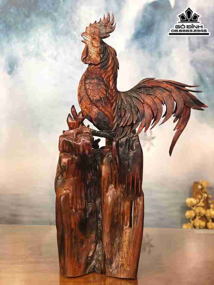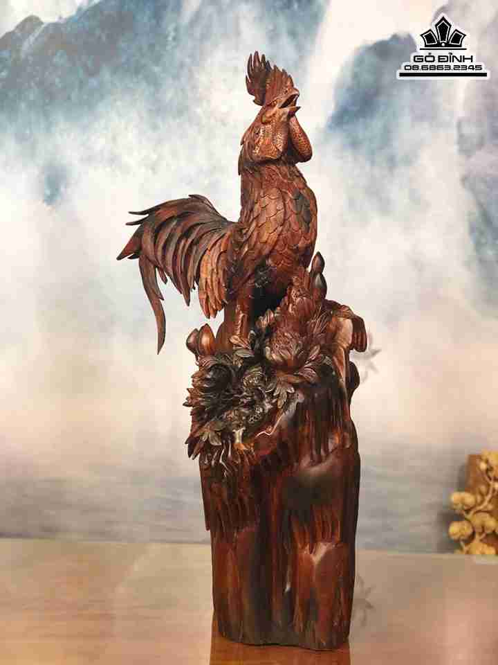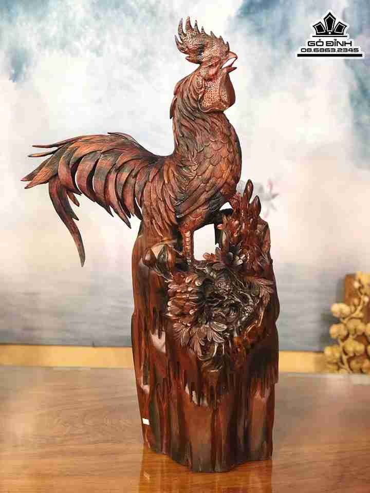 Tượng Gà Trống Gỗ Trắc Cao 96 Rộng 55 Dày 22 (cm)