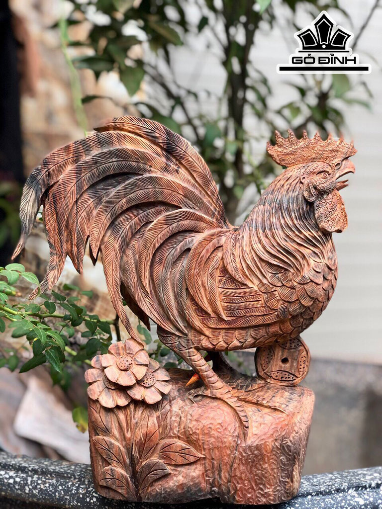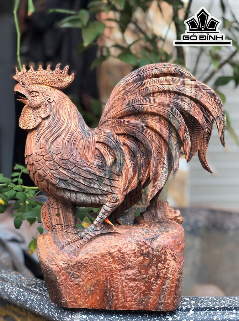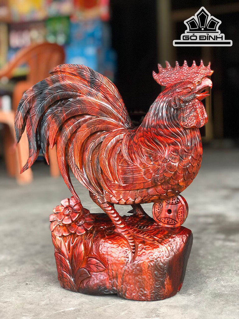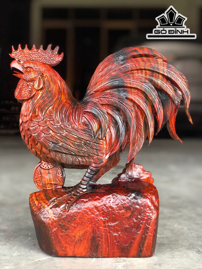 Tượng Gà Trống Gỗ Trắc Cao 30 Ngang 26 Sâu 10 (cm)