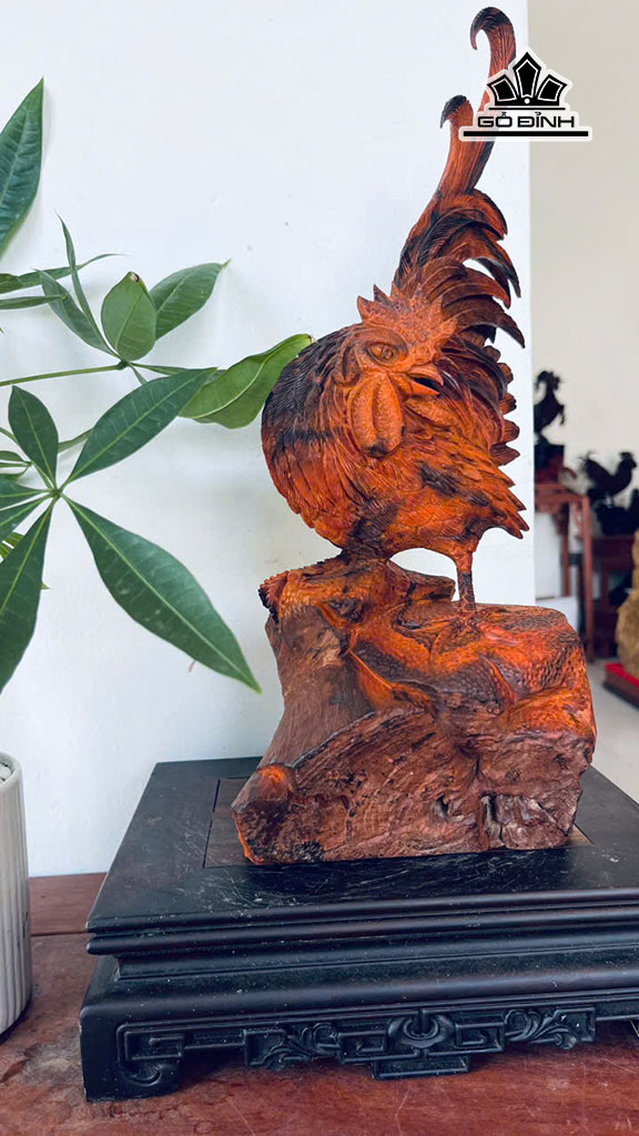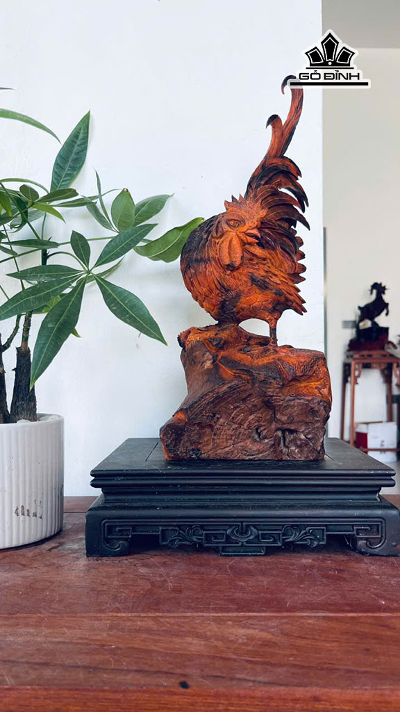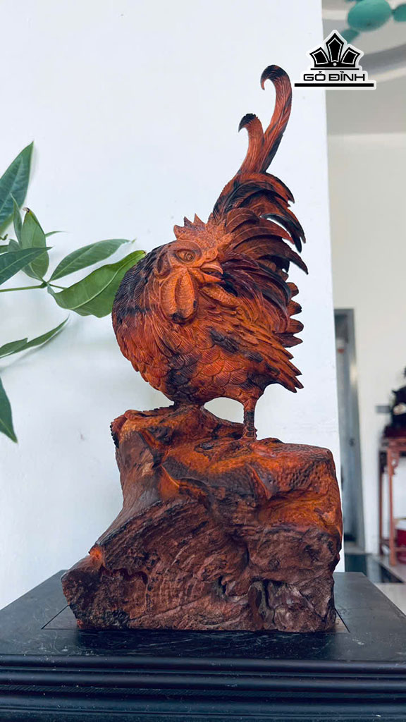Tượng Gà Trống Gỗ Trắc Cao 37 Ngang 16 Sâu 11 (cm)