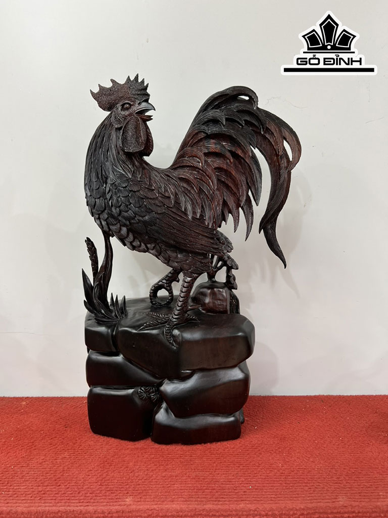 Tượng Gà Trống Gỗ Trắc Cao 47 Ngang 30 Sâu 18 (cm)