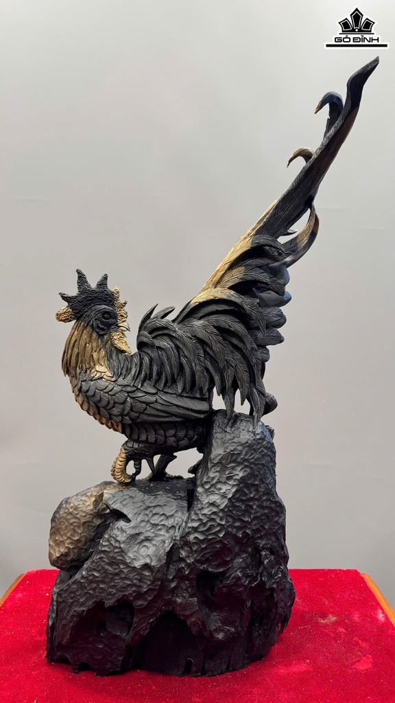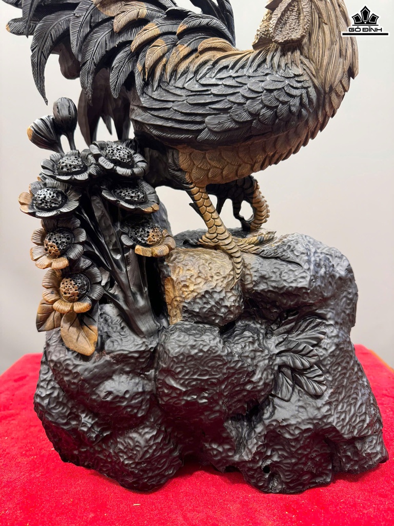 Tượng Gà Trống Phong Thủy Gỗ Mun Cao 56 Ngang 31 Sâu 16 (cm)