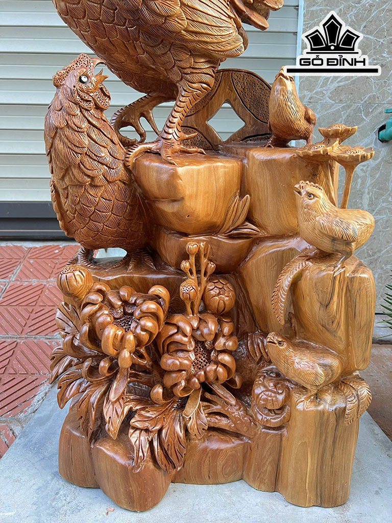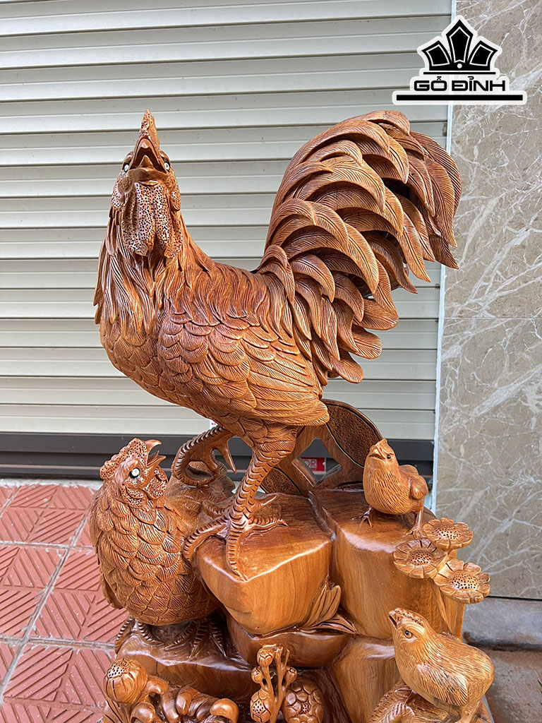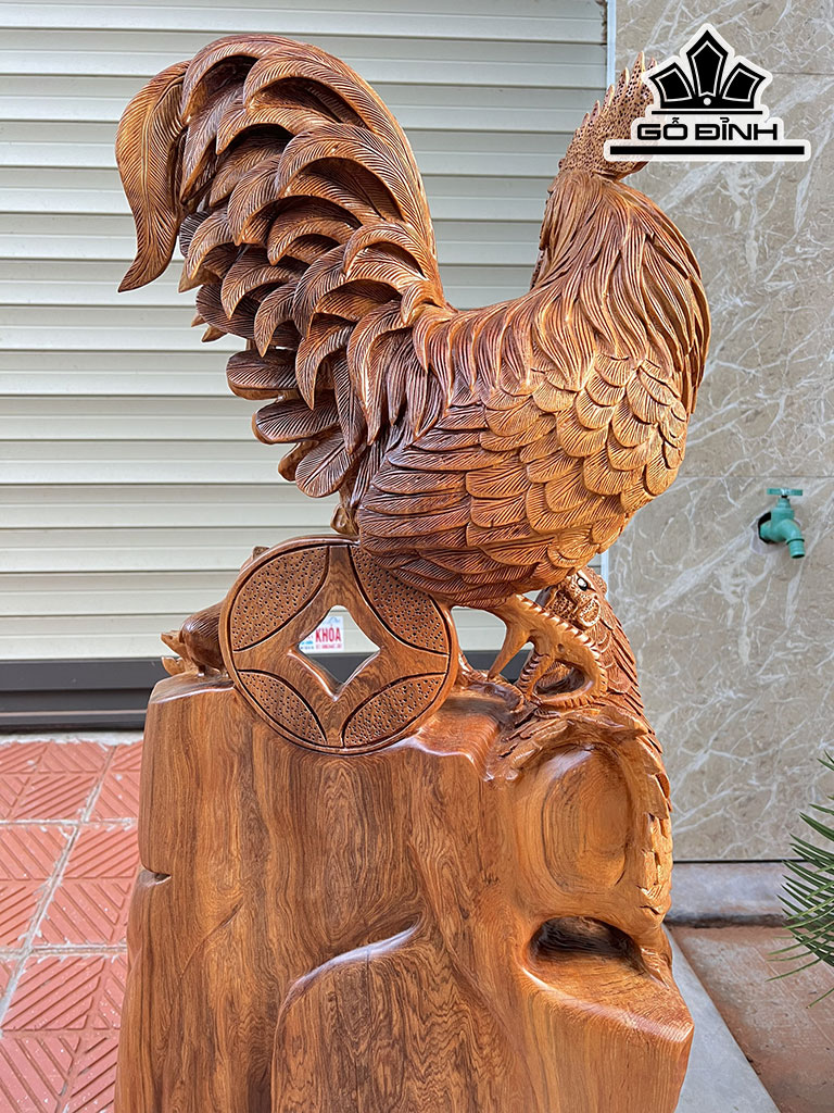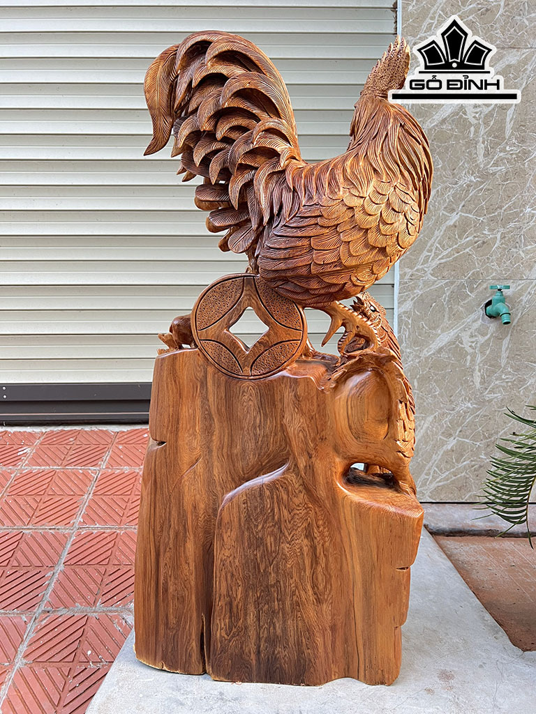Tượng Gà Trống Phong Thủy Gỗ Ngọc Am Cao 88 Ngang 43 Sâu 25 (cm)