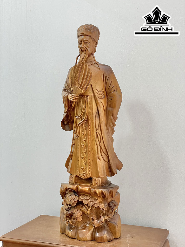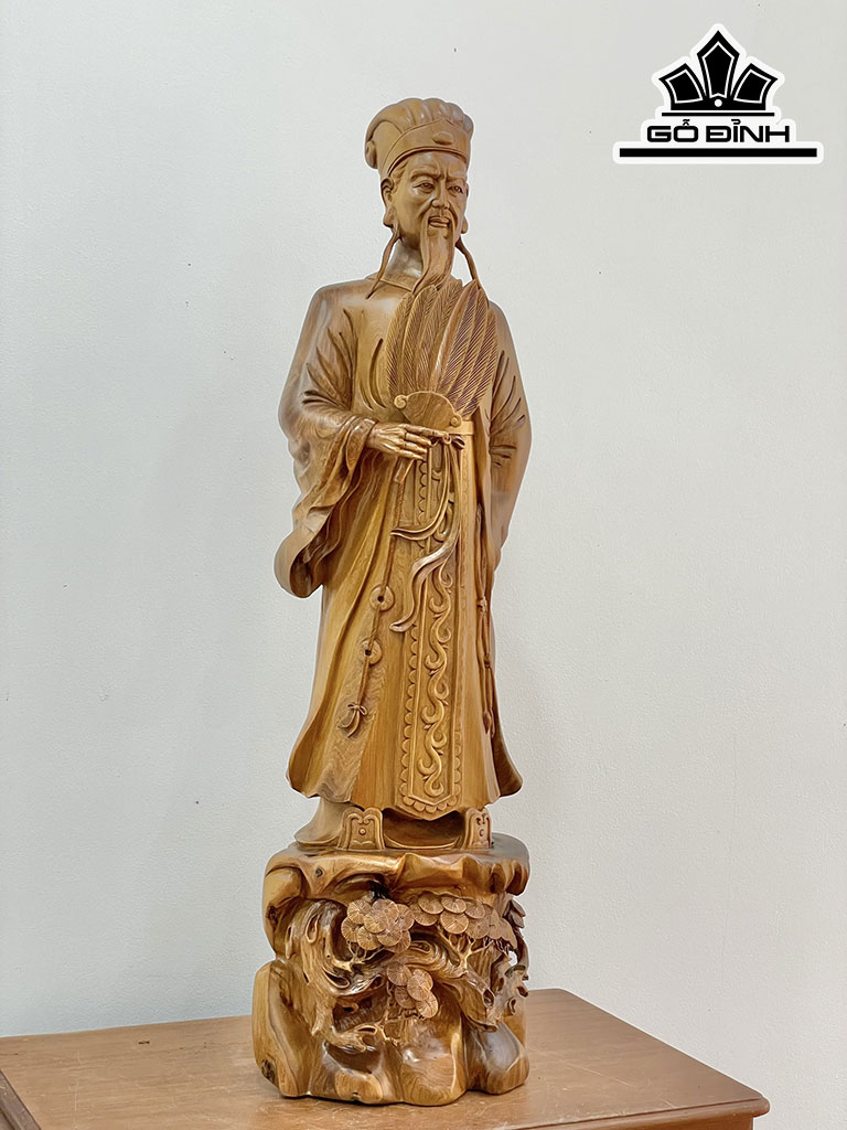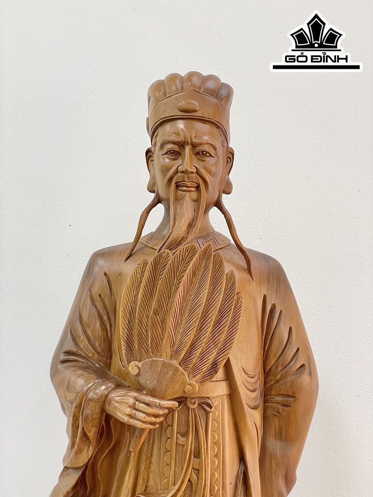Tượng Gia Cát Lượng Gỗ Bách Xanh Cao 105 Ngang 30 Sâu 22 (cm)