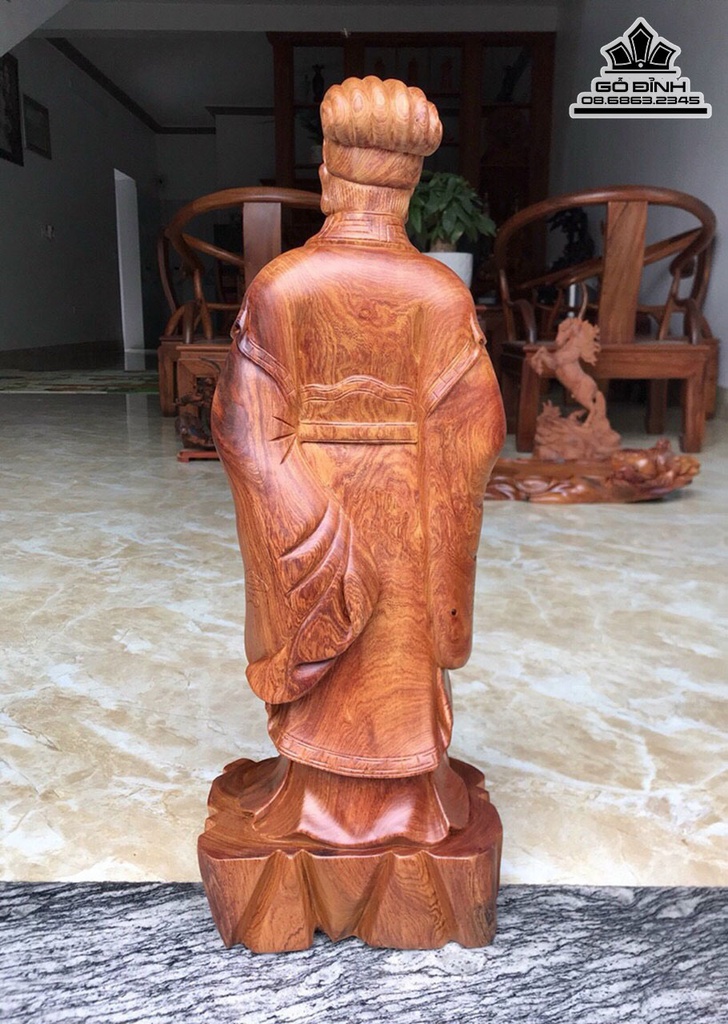 Tượng Gia Cát Lượng Gỗ Cẩm Liền Khối Cao 62 Ngang 23 Sâu 15 (cm)