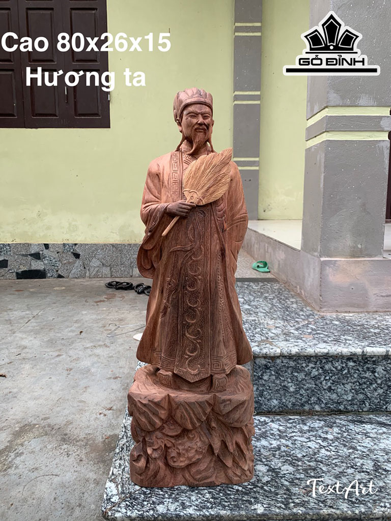 Tượng Gia Cát Lượng Gỗ Hương Cao 80 Ngang 26 Sâu 15 (cm)