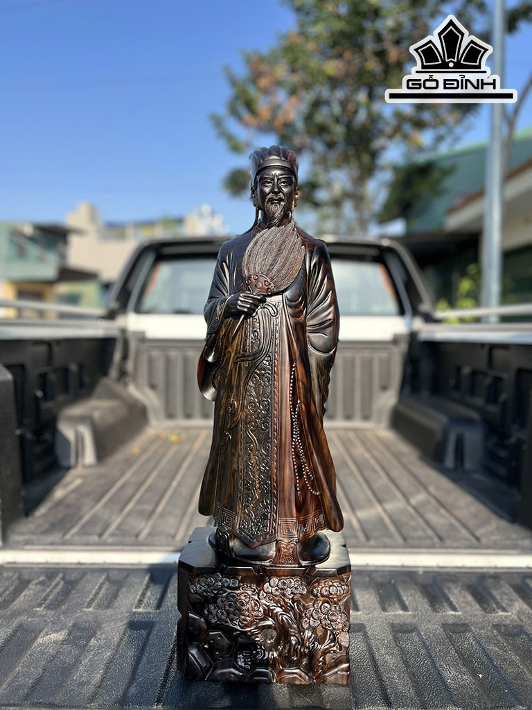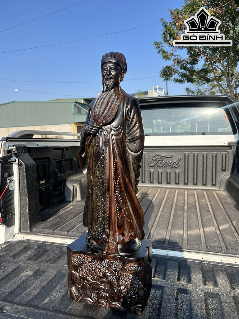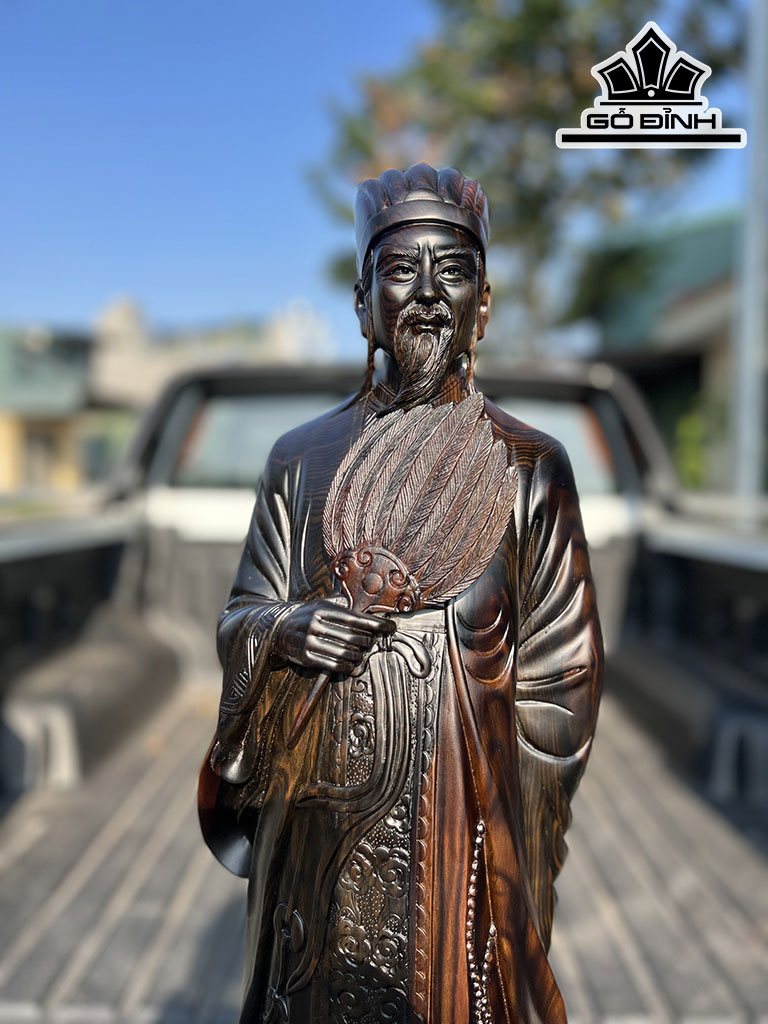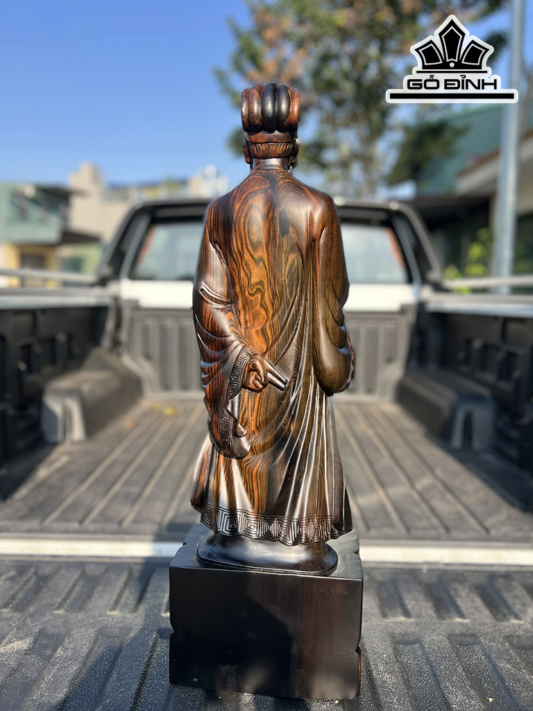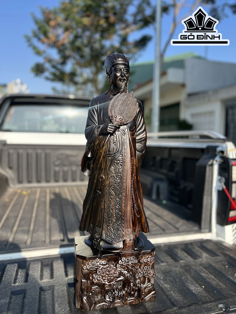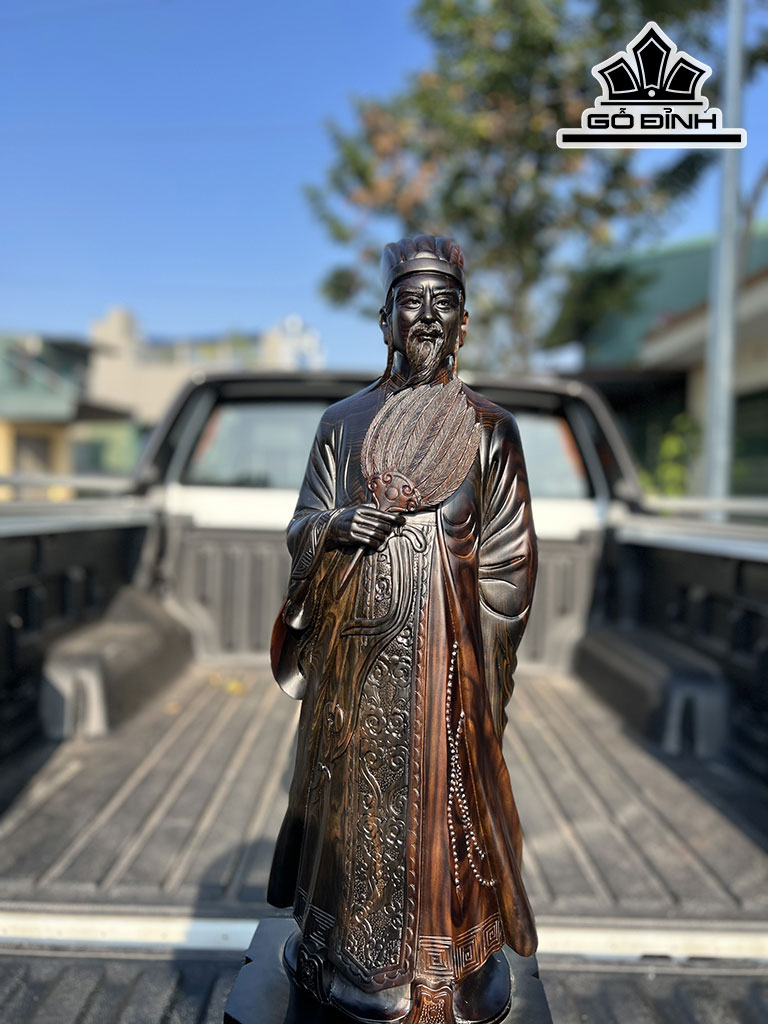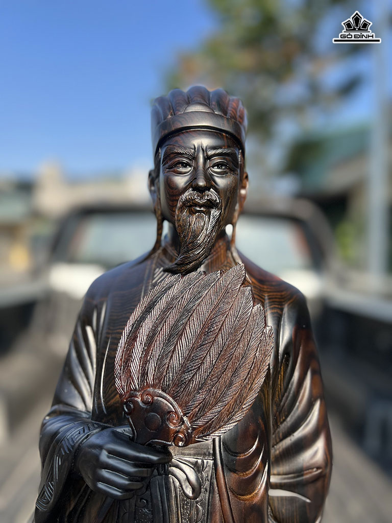Tượng Gia Cát Lượng Gỗ Mun Hoa Cao 80 Ngang 25 Sâu 15 (cm)