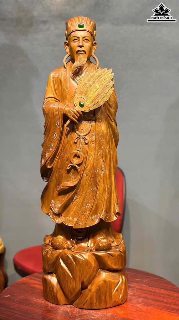 Tượng Gia Cát Lượng Gỗ Ngọc Am Cao 86 Ngang 28 Sâu 20 (cm)