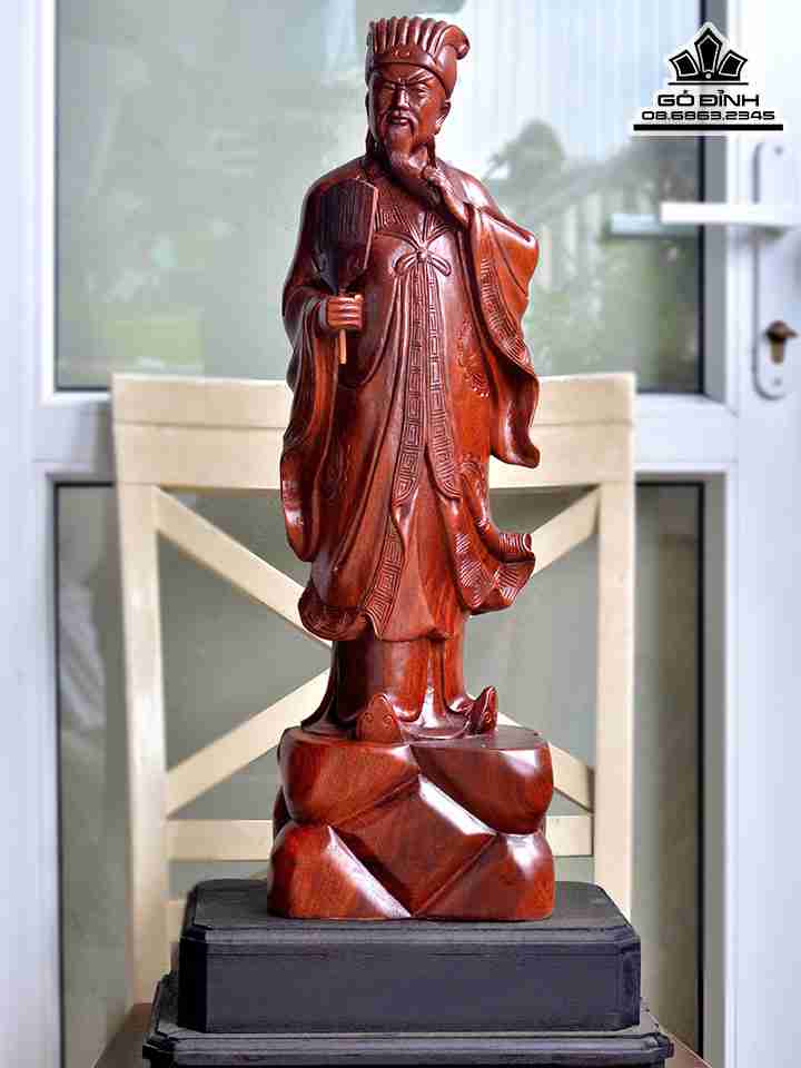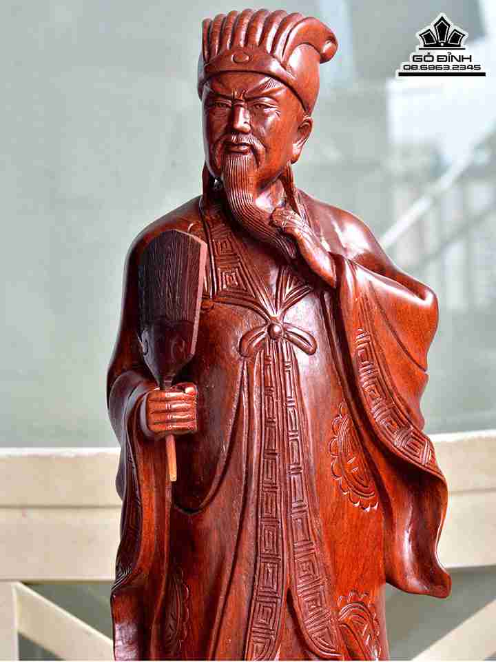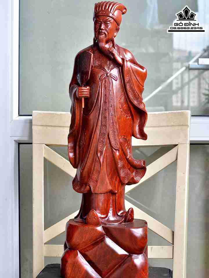 Tượng Gia Cát Lượng Khổng Minh Gỗ Hương cao 60 rộng 18 dày 18 (cm)
