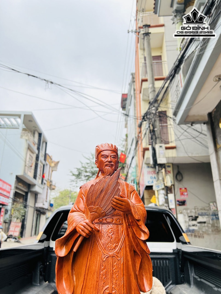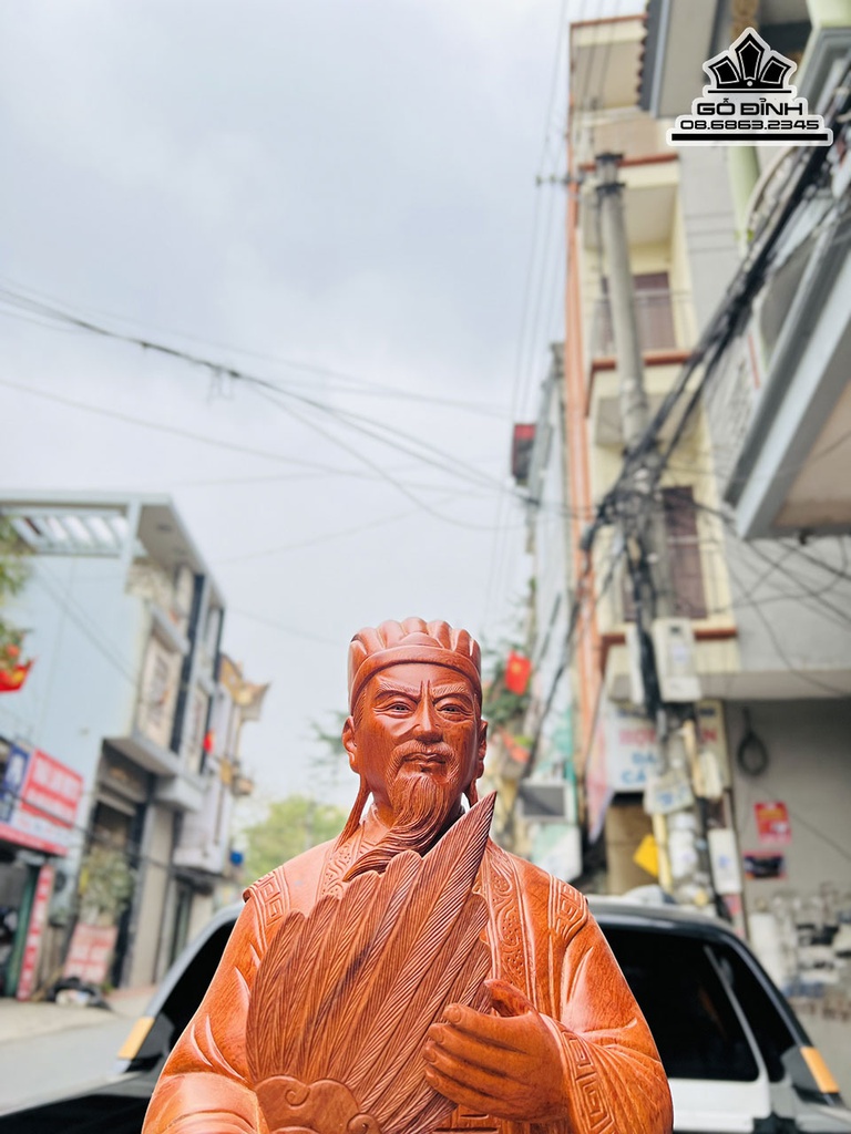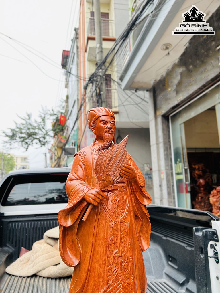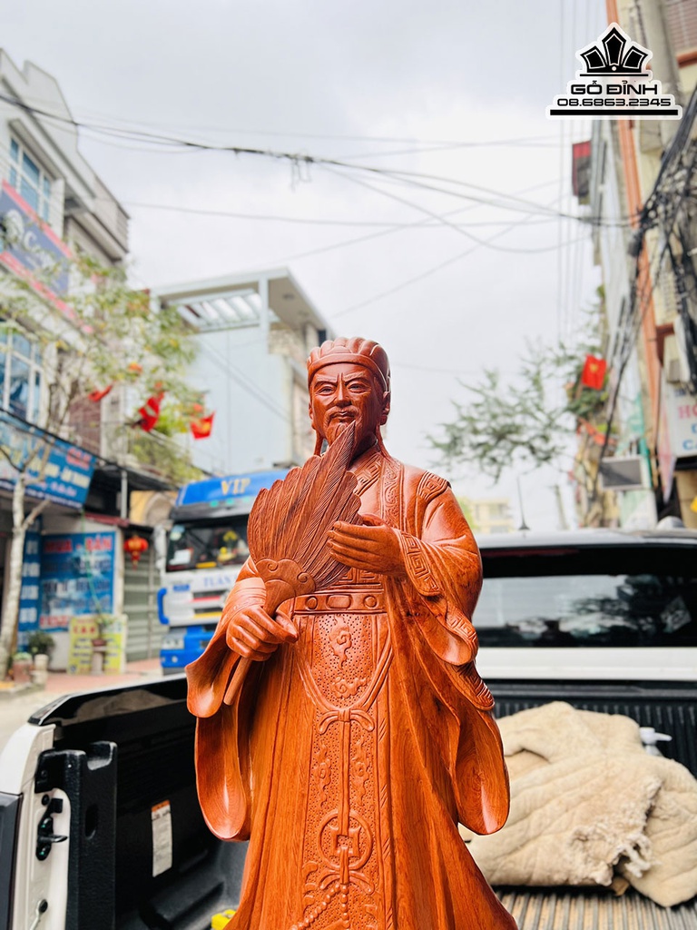 Tượng Gia Cát Lượng (Khổng Minh)Gỗ Hương Cao 100 Ngang 35 Sâu 22 (cm)