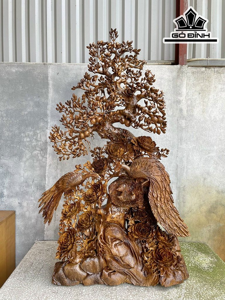 Tượng Gia Đình Chim Gỗ Bách Xanh Cao 135 Ngang 80 Sâu 30 (cm)