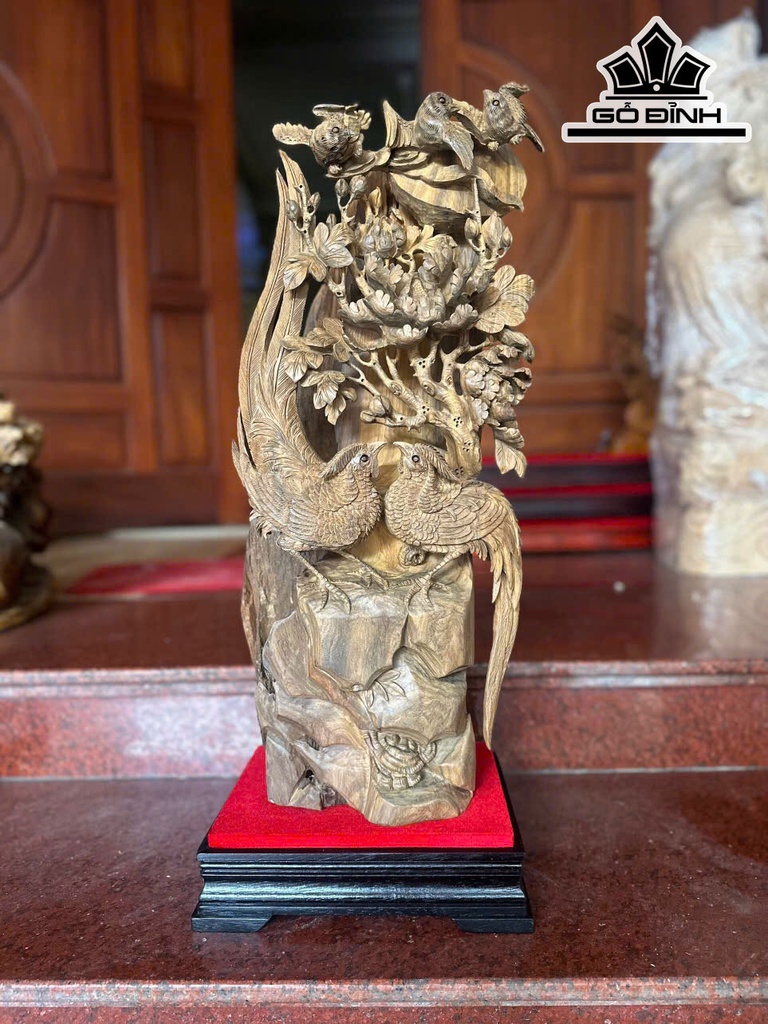 Tượng Gia Đình Chim Gỗ Bách Xanh Cao Cả Kỷ 75 Ngang 29 Sâu 20 (cm)