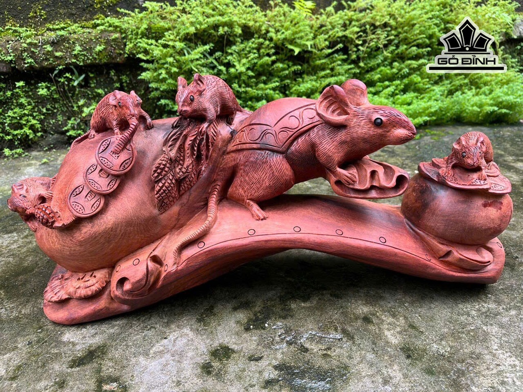Tượng Gia Đình Chuột Chuột Gỗ Hương Cao 24 Ngang 52 Sâu 17 (cm)