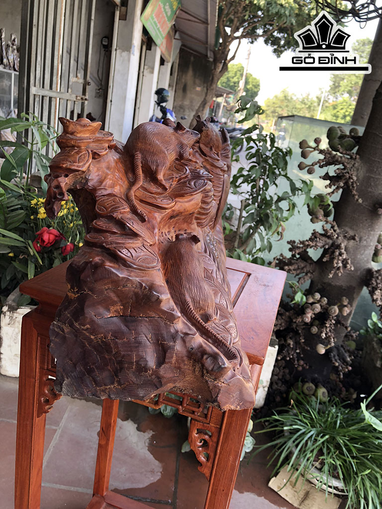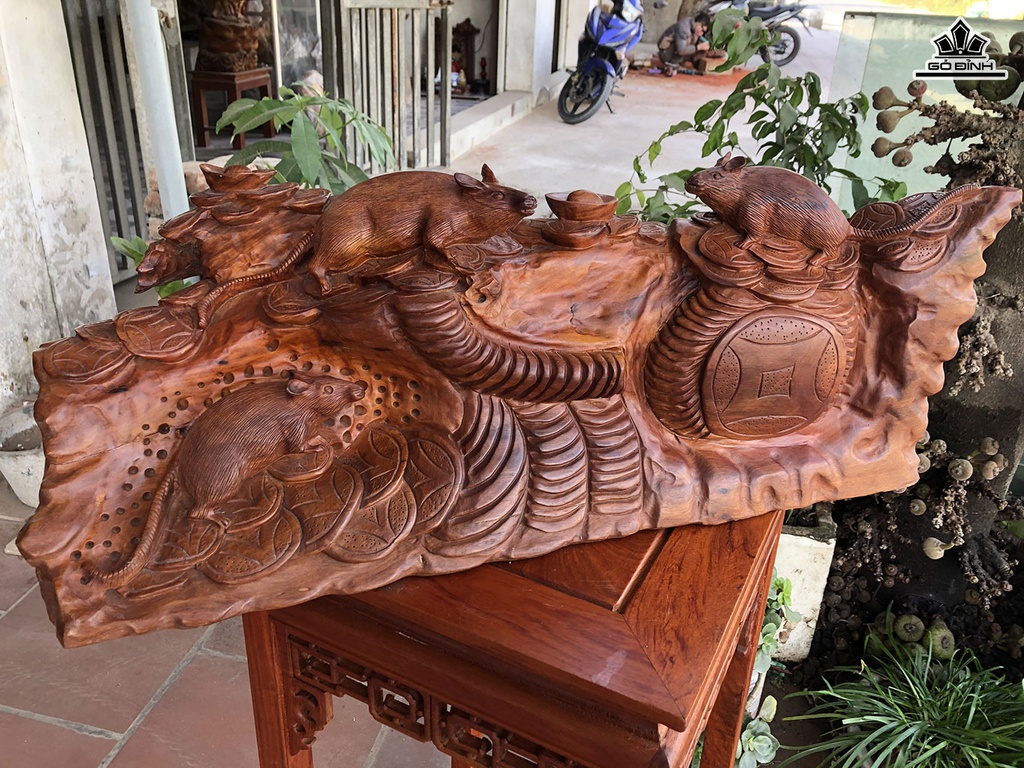 Tượng Gia Đình Chuột Gỗ Hương Cao 24 Ngang 72 Sâu 38 (cm)