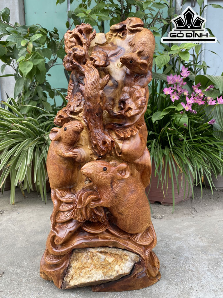 Tượng Gia Đình Chuột Gỗ Hương Cao 56 Ngang 26 Sâu 22 (cm)