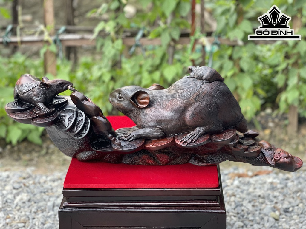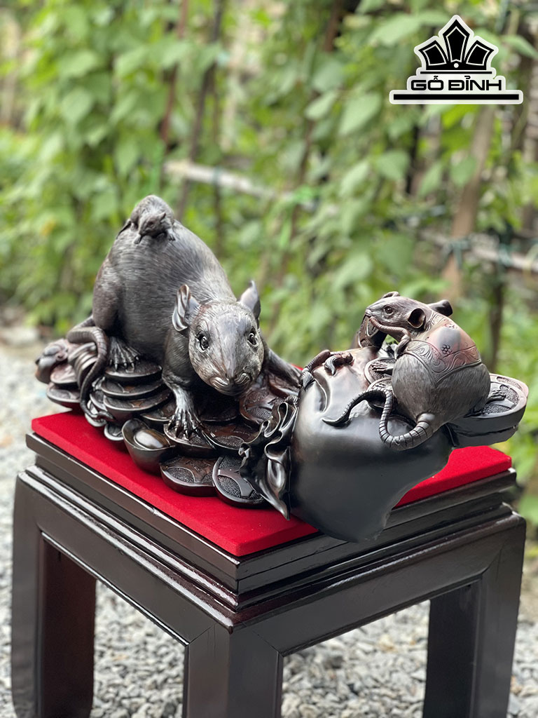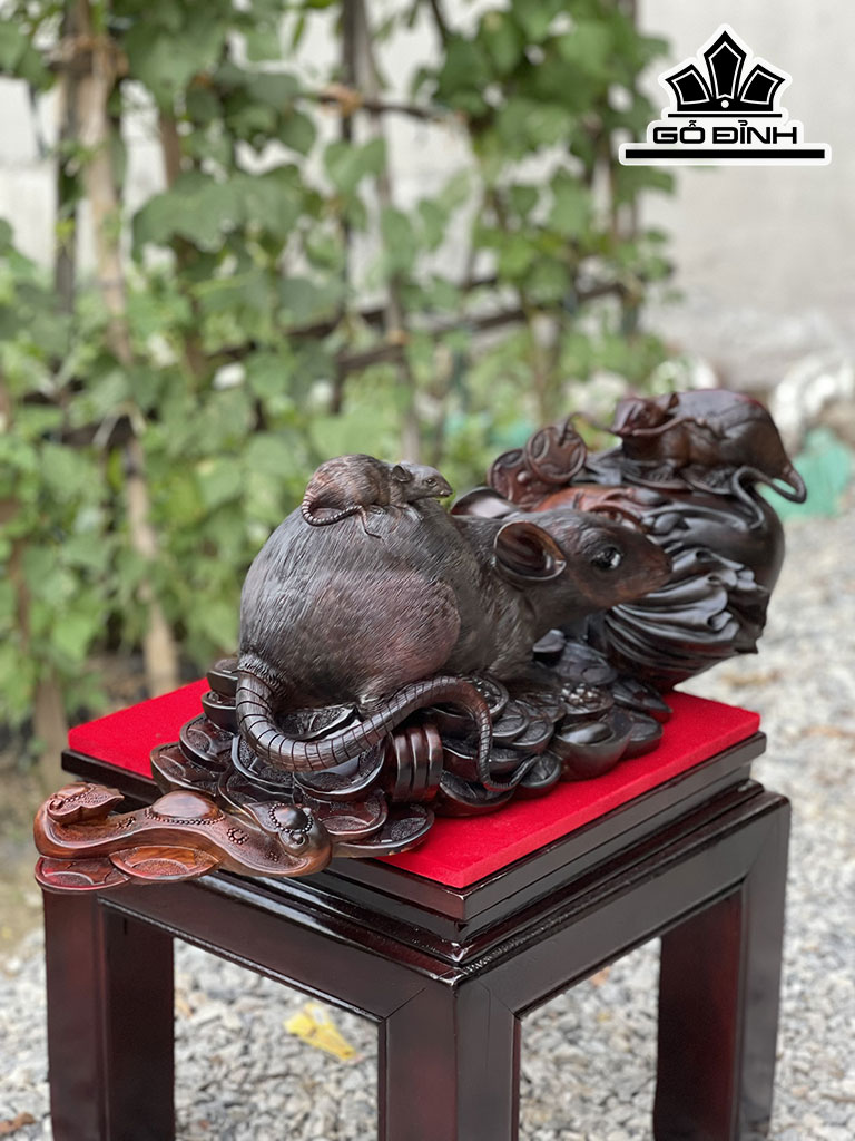Tượng Gia Đình Chuột Gỗ Trắc
