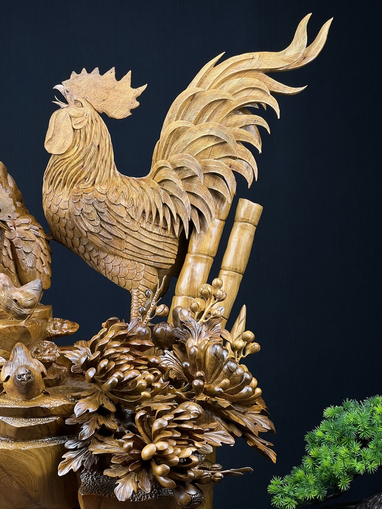 Tượng Gia Đình Gà Gỗ Bách Xanh