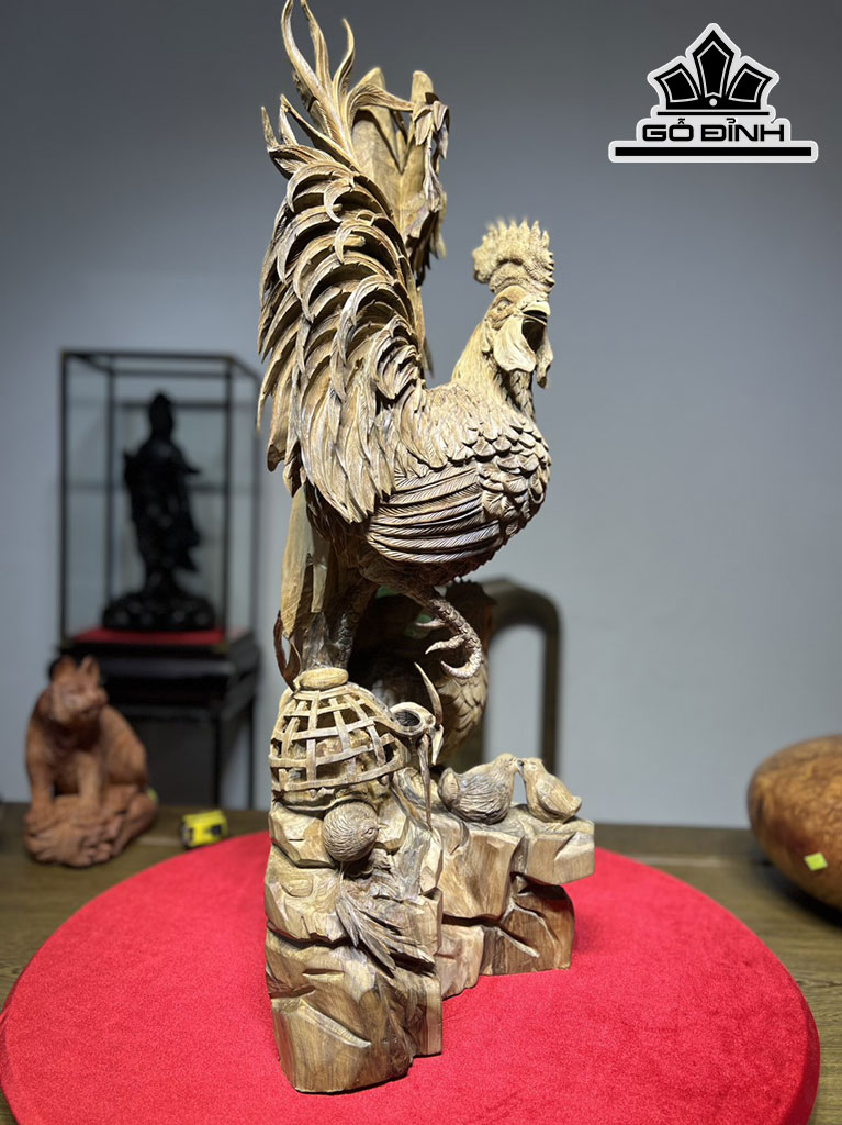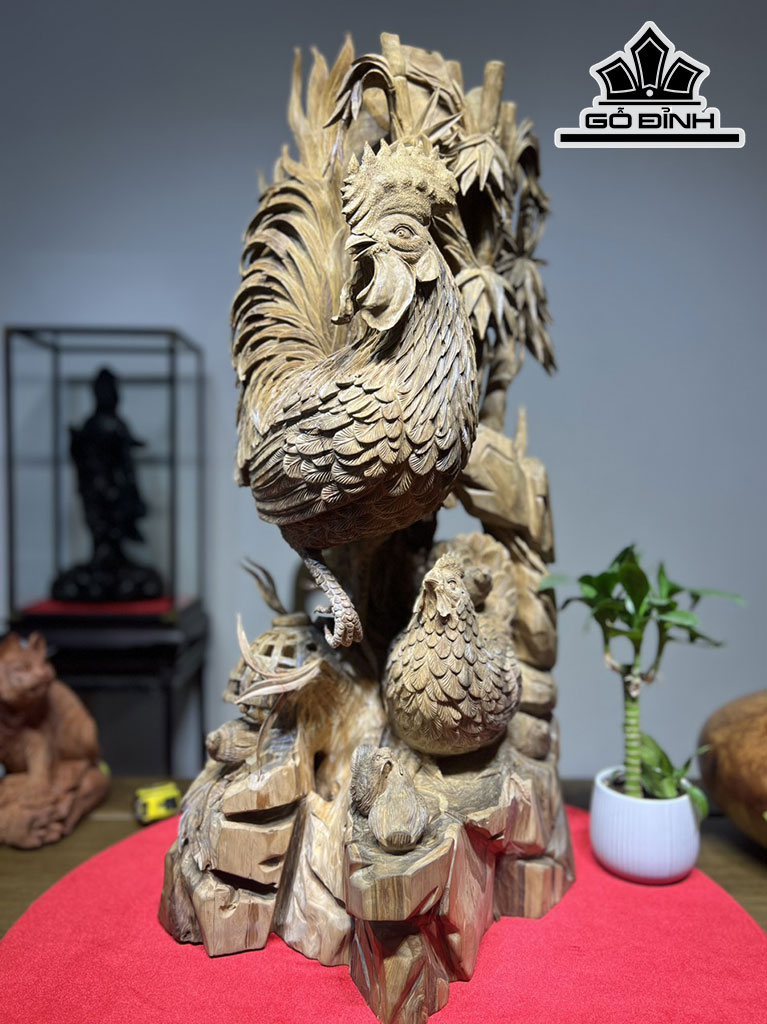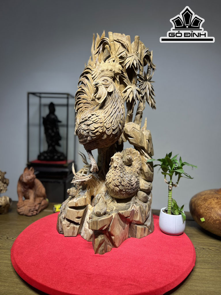 Tượng Gia Đình Gà Gỗ Bách Xanh Cao 80 Ngang 40 Sâu 50 (cm)