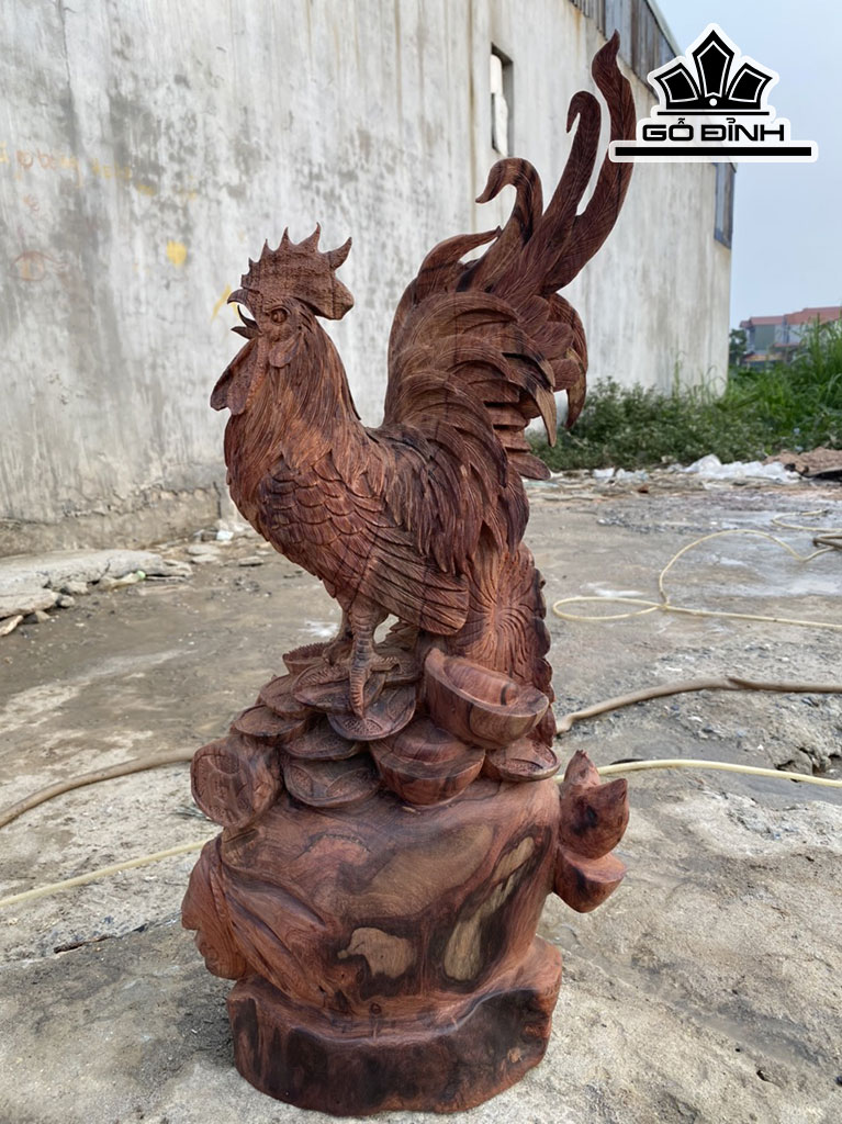 Tượng Gia Đình Gà Gỗ Cẩm Cao 68 Ngang 32 Sâu 20 (cm)