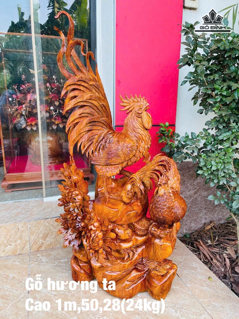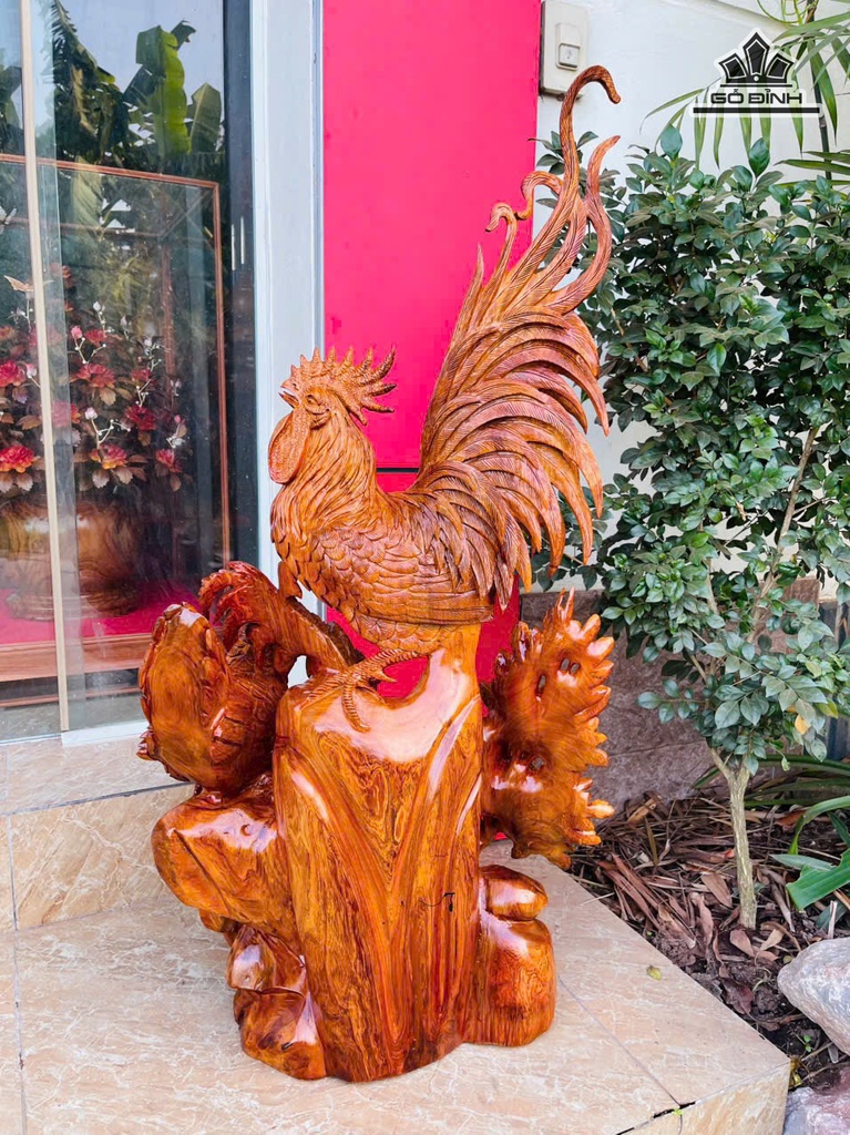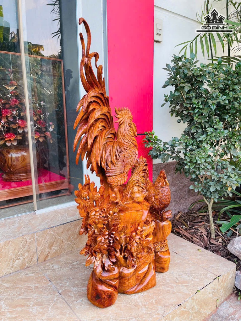 Tượng Gia Đình Gà Gỗ Hương Cao 100 Ngang 50 Sâu 28 (cm) - 24kg