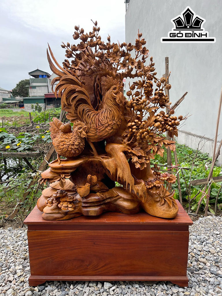 Tượng Gia Đình Gà Gỗ Hương Cao 148 Ngang 80 Sâu 30 (cm)