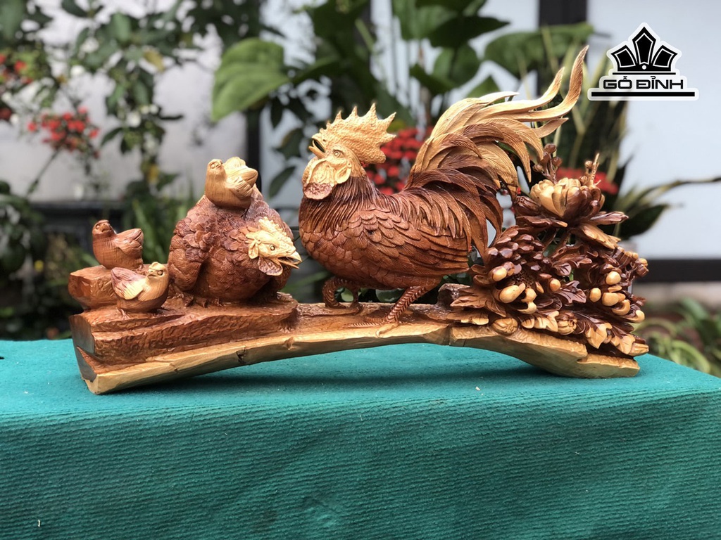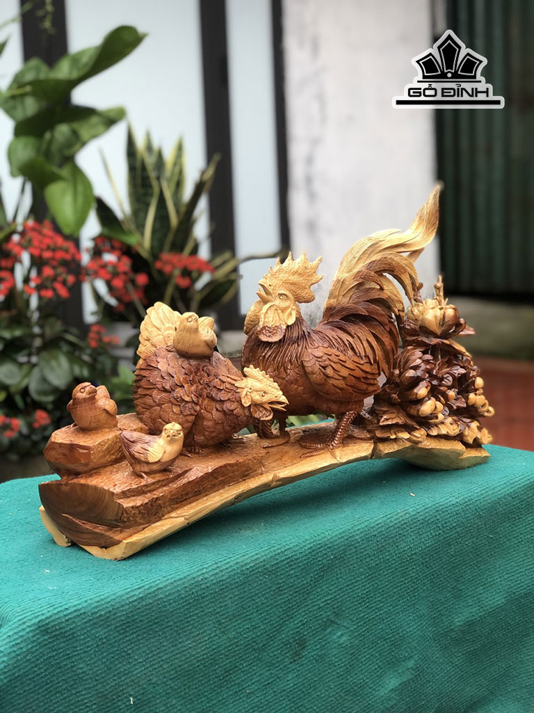 Tượng Gia Đình Gà Gỗ Hương Cao 38 Ngang 63 Sâu 20 (cm)