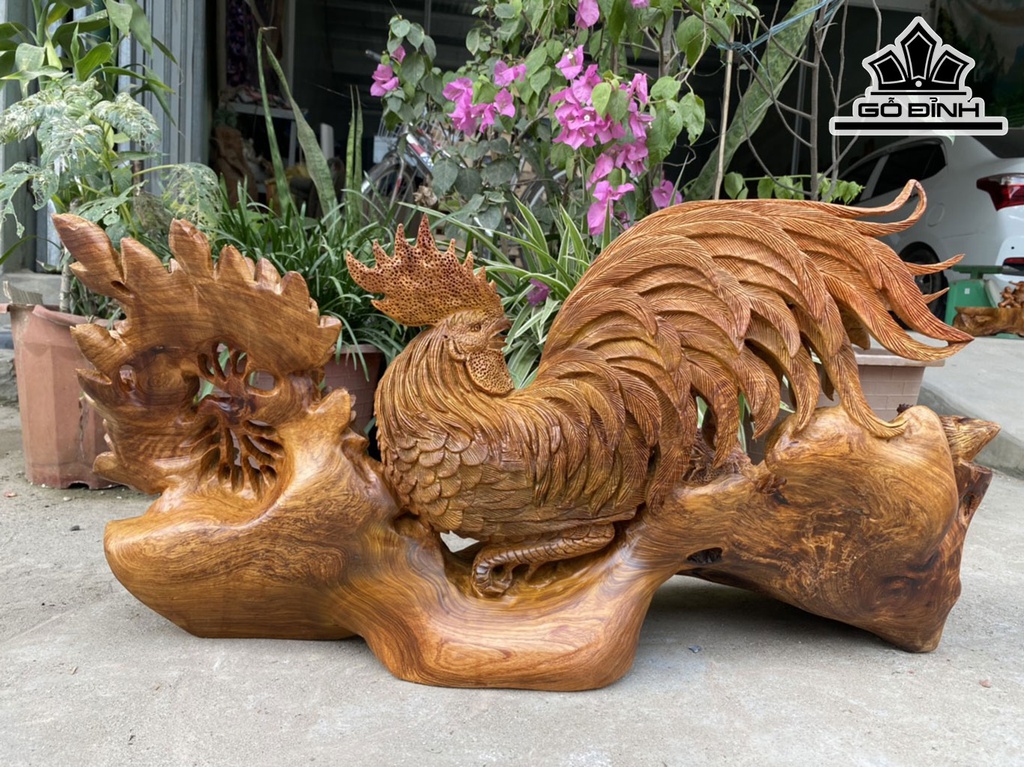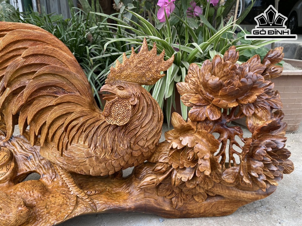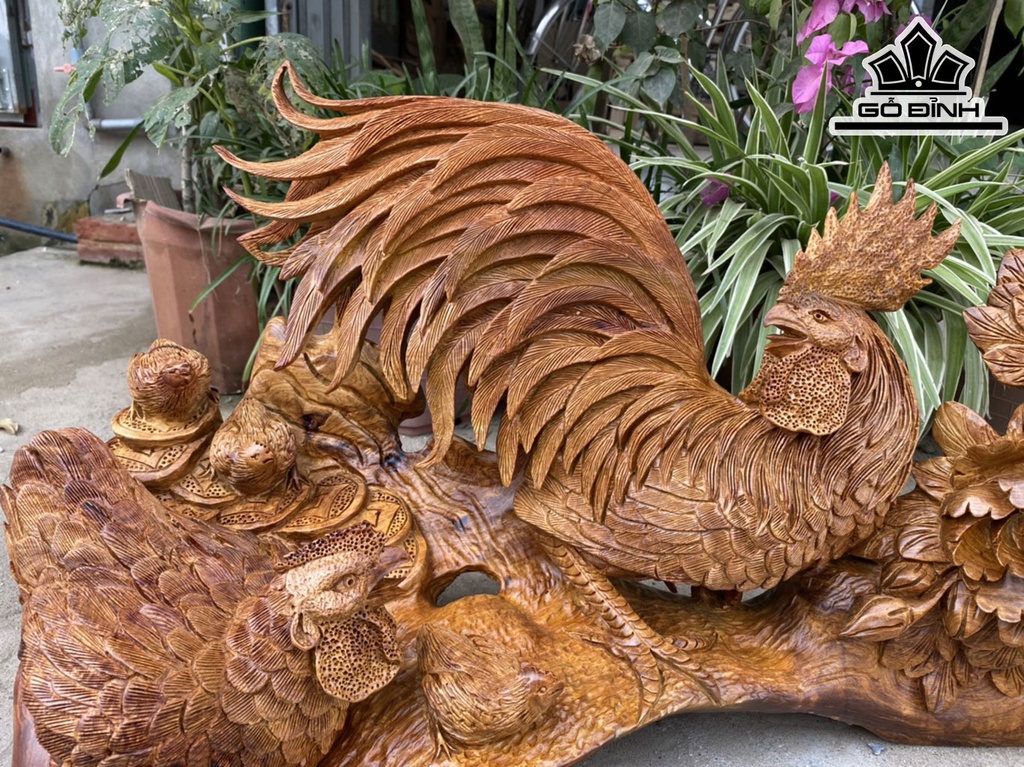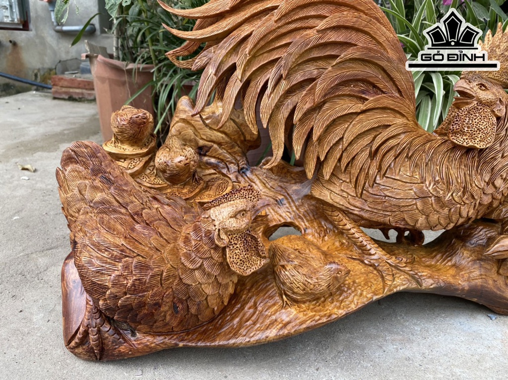 Tượng Gia Đình Gà Gỗ Hương Cao 39 Ngang 73 Sâu 28 (cm)