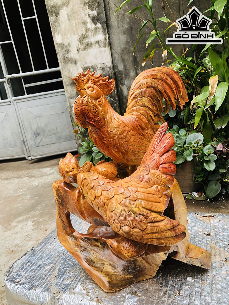Tượng Gia Đình Gà Gỗ Hương Cao 47 Ngang 41 Sâu 34 (cm)