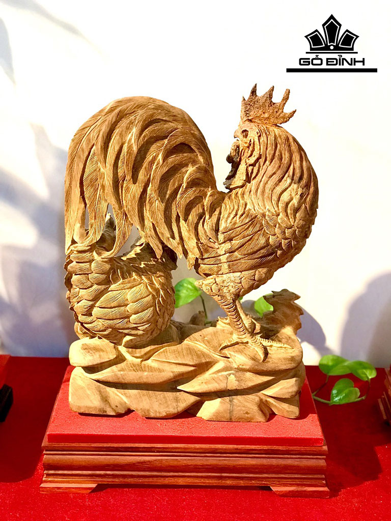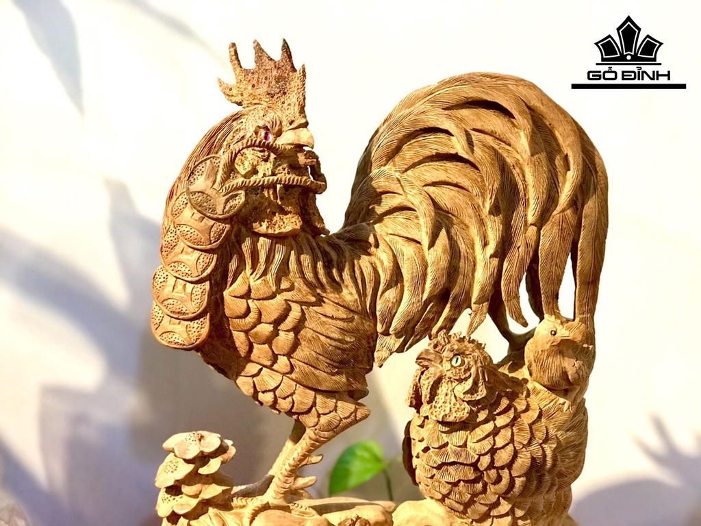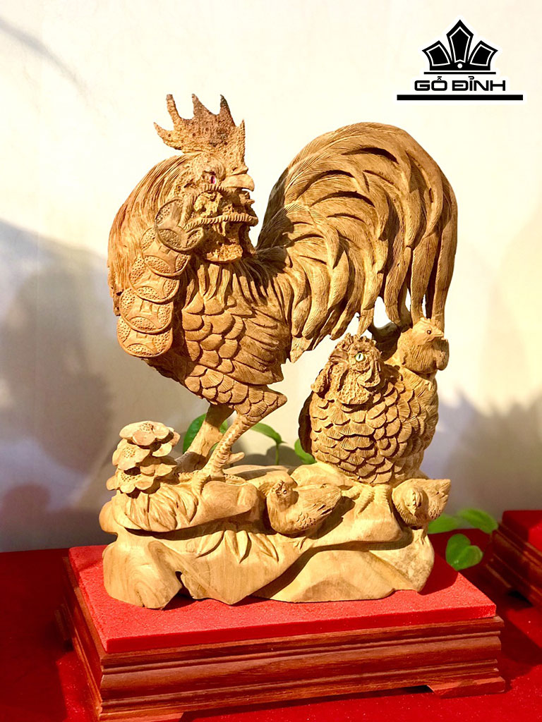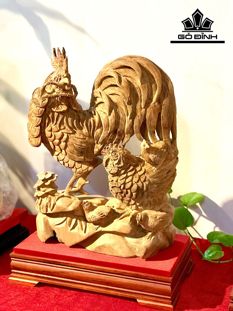 Tượng Gia Đình Gà Gỗ Hương Cao 54 Ngang 34 Sâu 14 (cm)