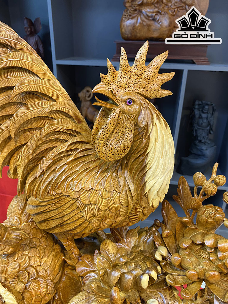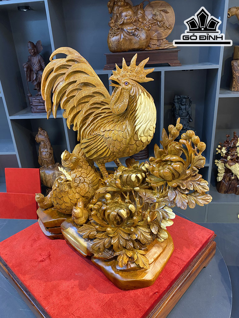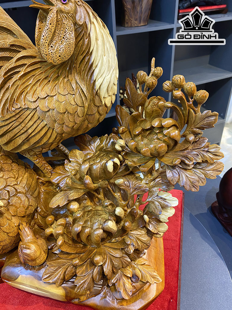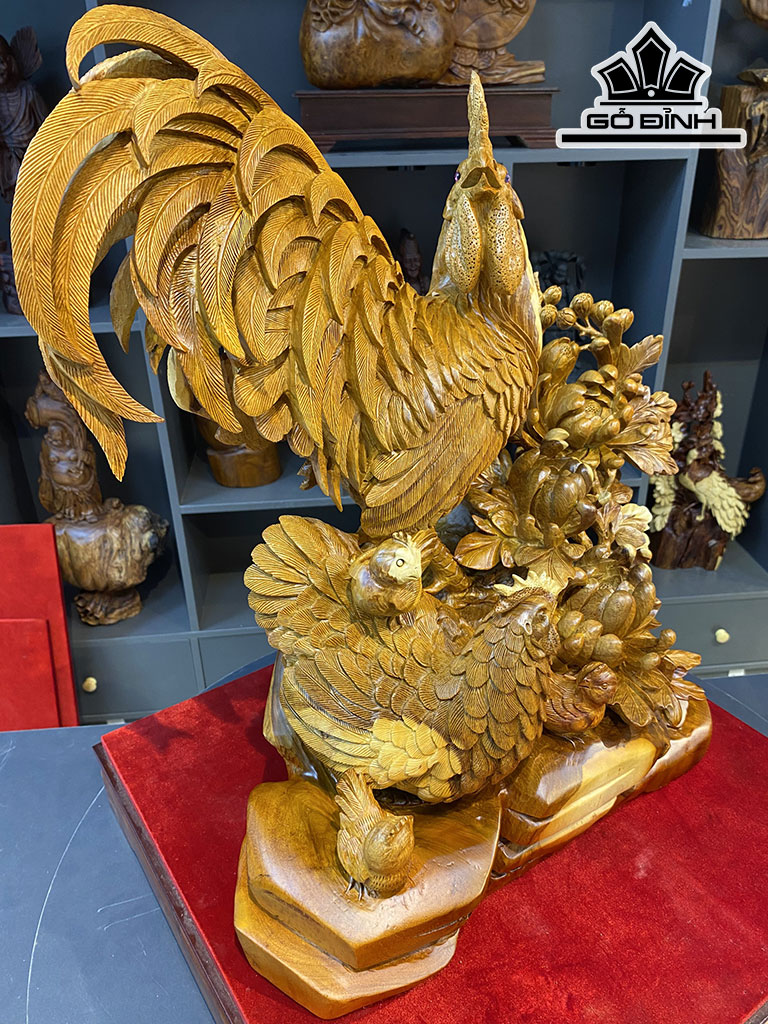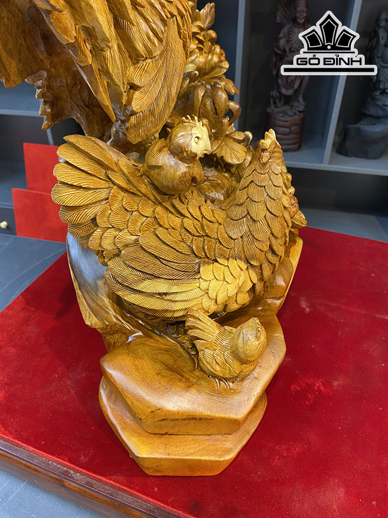 Tượng Gia Đình Gà Gỗ Hương Cao 55 Ngang 55 Sâu 30 (cm)