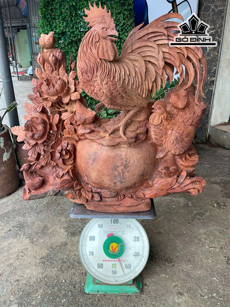 Tượng Gia Đình Gà Gỗ Hương Cao 70 Ngang 70 Sâu 28 (cm)