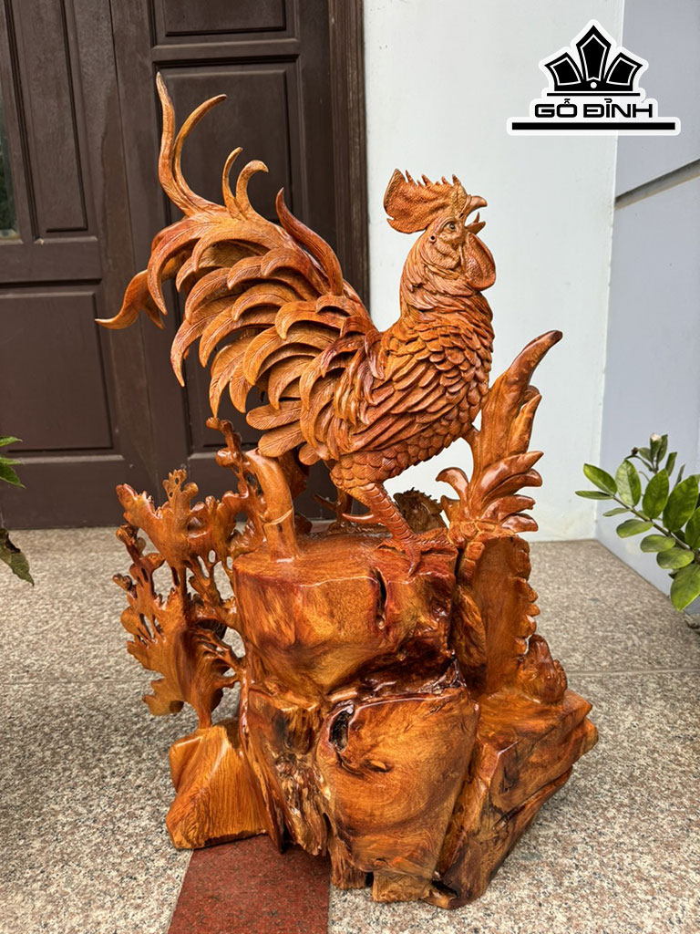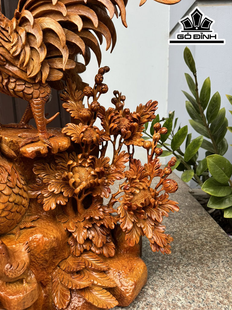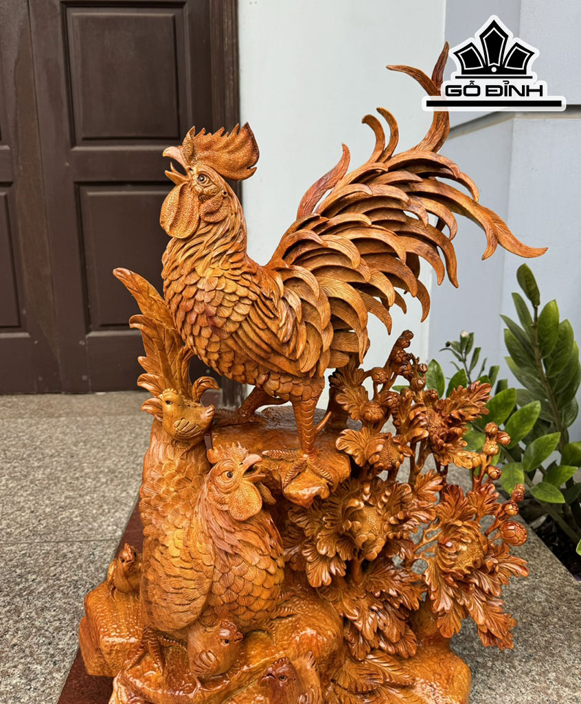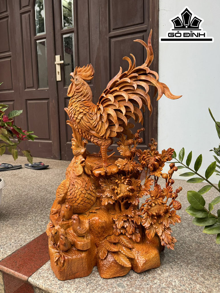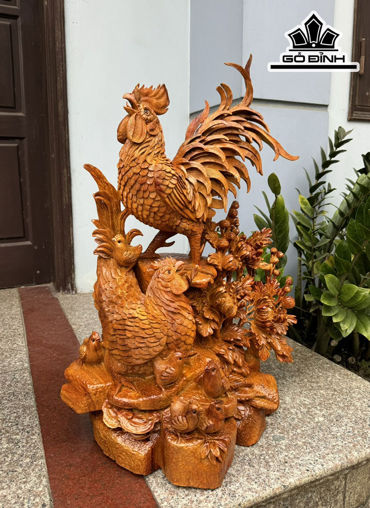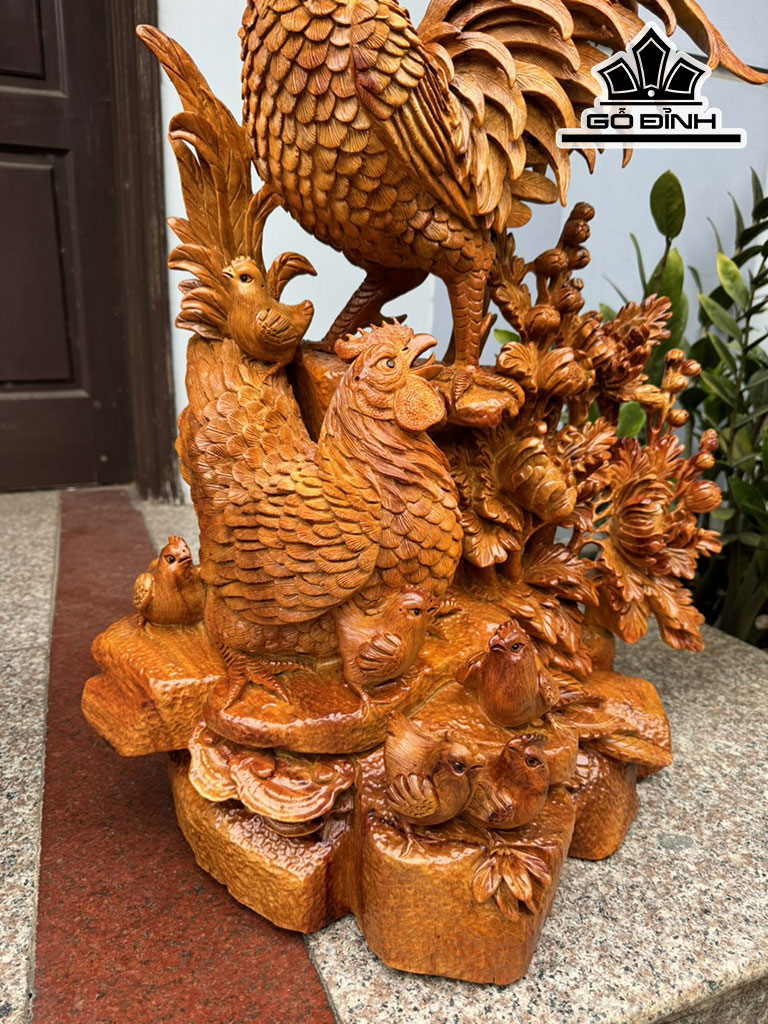 Tượng Gia Đình Gà Gỗ Hương Cao 78 Ngang 55 Sâu 40 (cm)