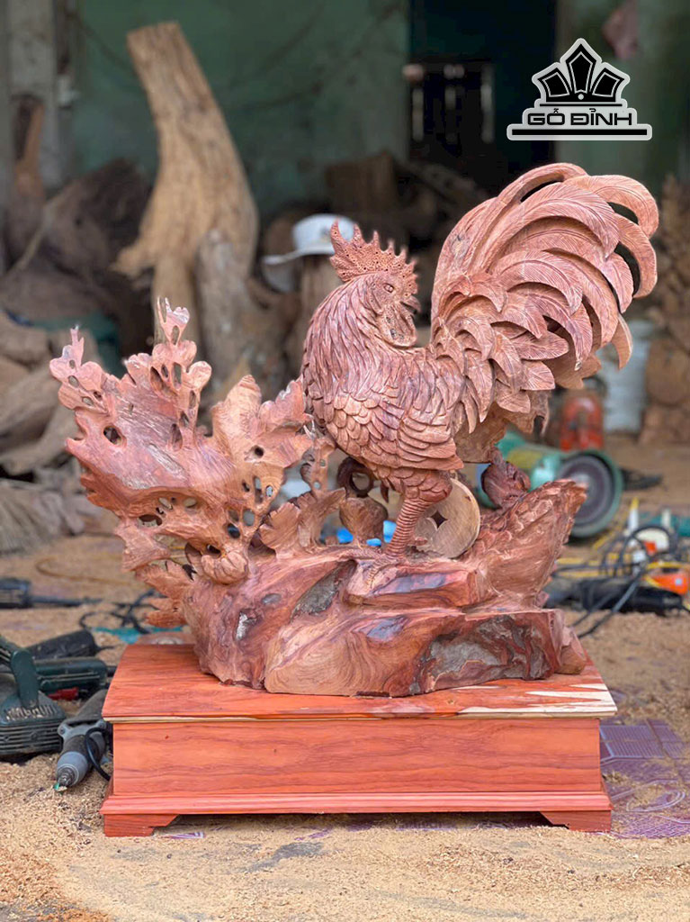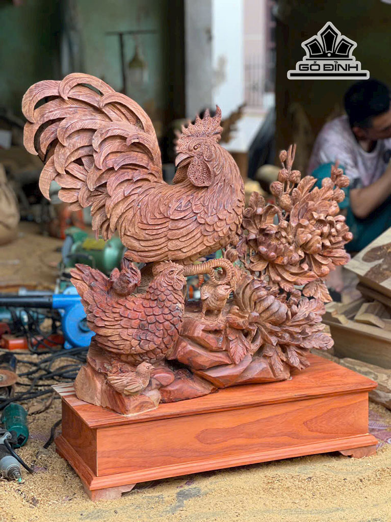 Tượng Gia Đình Gà Gỗ Hương Cao 78 Ngang 70 Sâu 28 (cm)