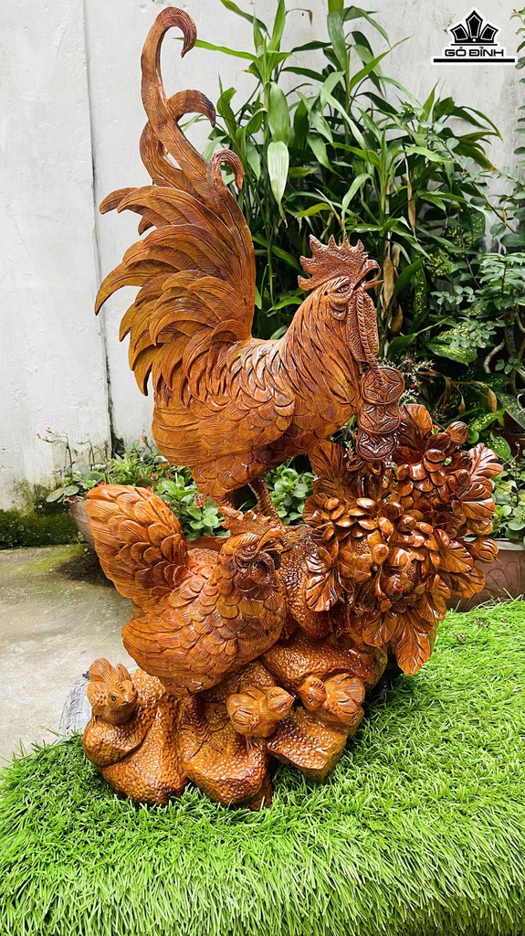 Tượng Gia Đình Gà Gỗ Hương Cao 79 Ngang 50 Sâu 35 (cm)