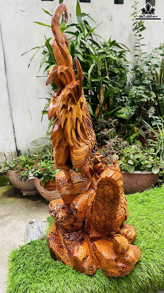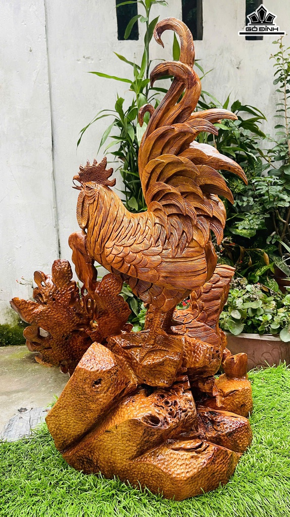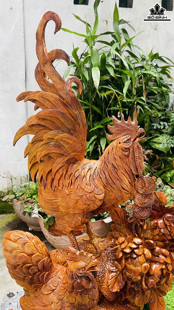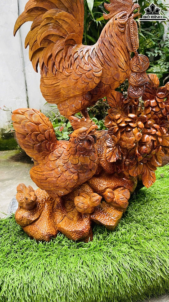 Tượng Gia Đình Gà Gỗ Hương Cao 79 Ngang 50 Sâu 35 (cm)