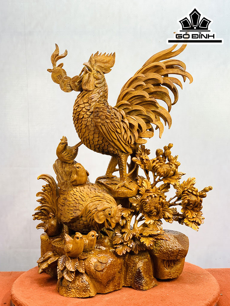 Tượng Gia Đình Gà Gỗ Hương Cao 79 Ngang 60 Sâu 30 (cm)