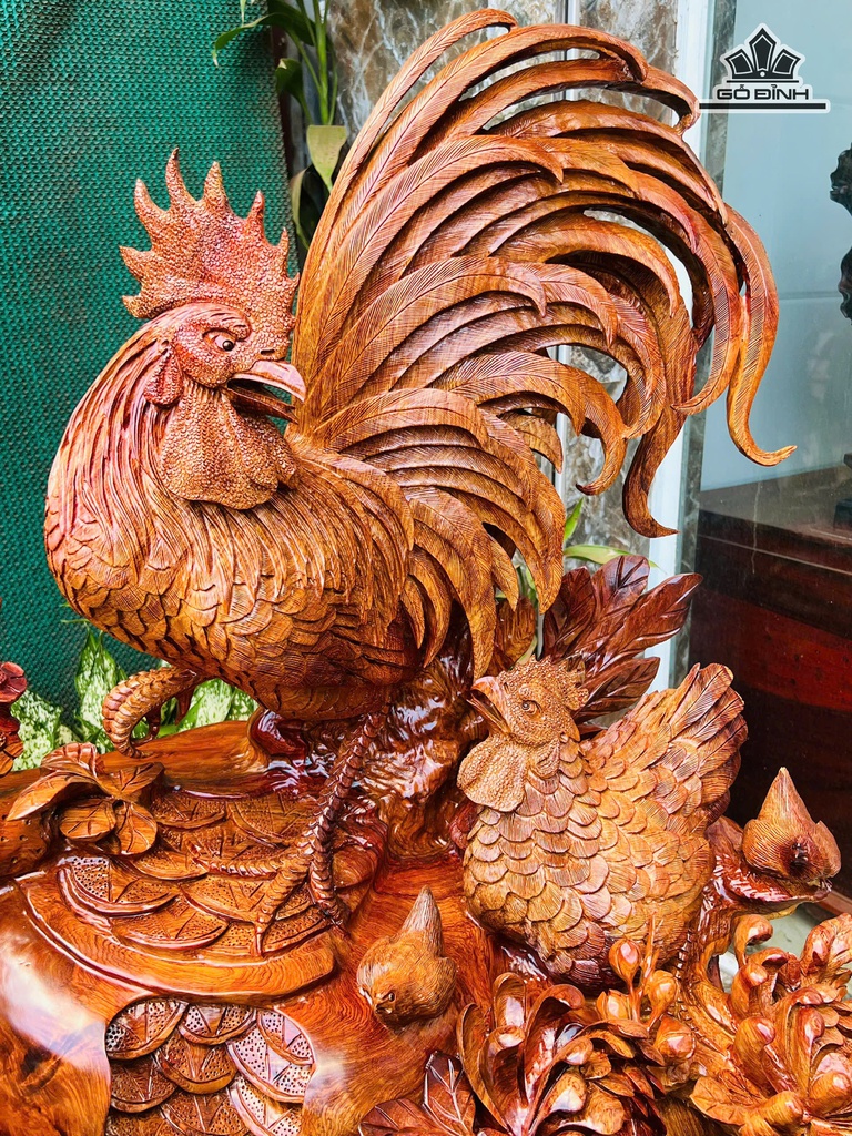 Tượng Gia Đình Gà Gỗ Hương Cao 80 Ngang 85 Sâu 58 (cm)