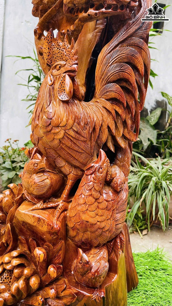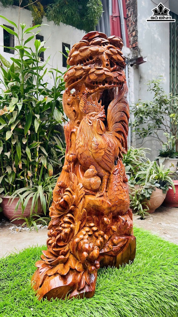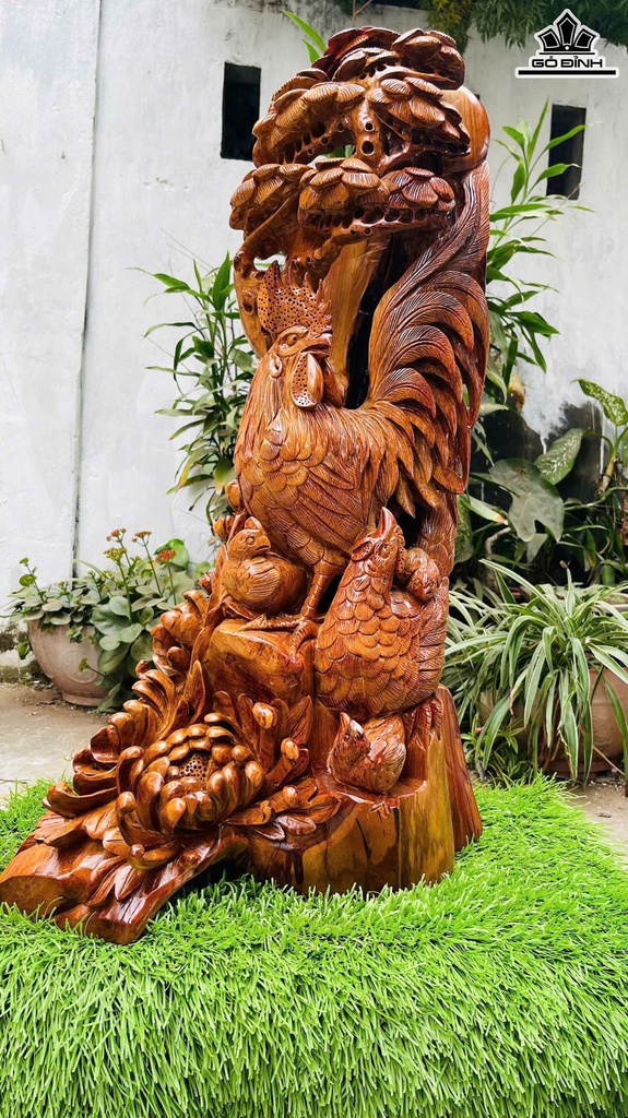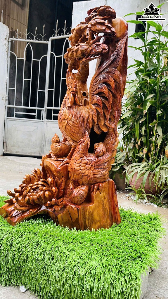 Tượng Gia Đình Gà Gỗ Hương Cao 81 Ngang 45 Sâu 32 (cm)