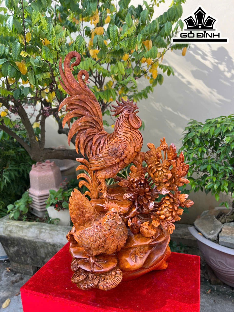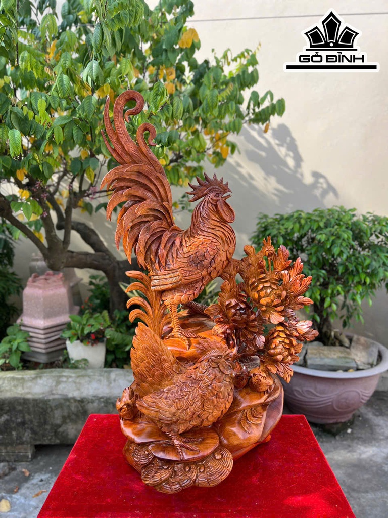 Tượng Gia Đình Gà Gỗ Hương Cao 85 Ngang 47 Sâu 40 (cm)