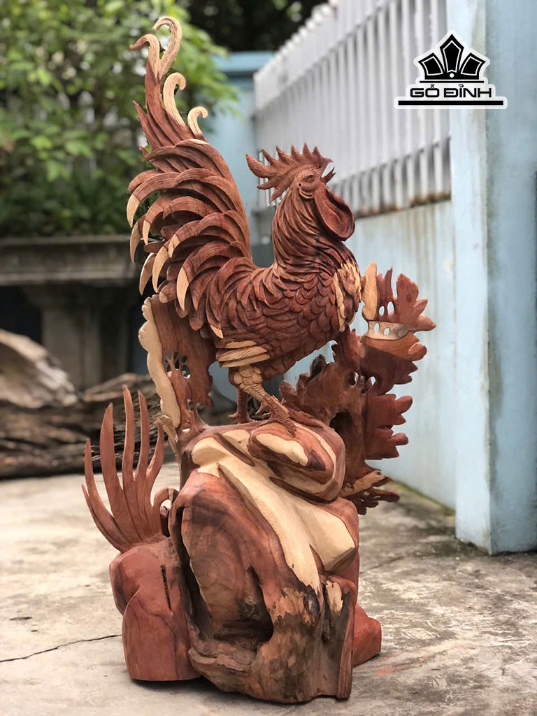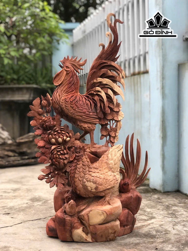 Tượng Gia Đình Gà Gỗ Hương Cao 99 Ngang 56 Sâu 42 (cm)